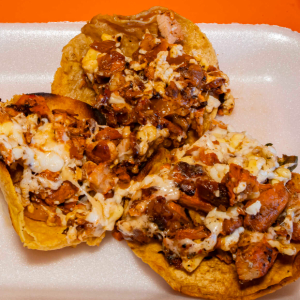 3 ricos volcanes con longaniza en tortilla taquera doradita
