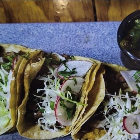 3 tacos de picaña, jugo de carne y una bebida