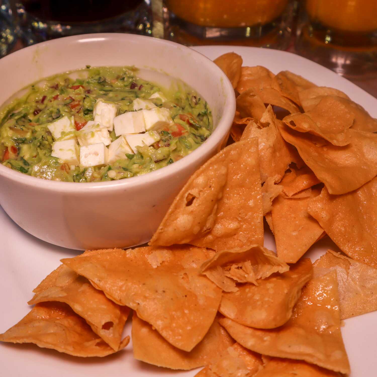 Aguacate, jitomate, cebolla y cilantro acompañado de totopos
