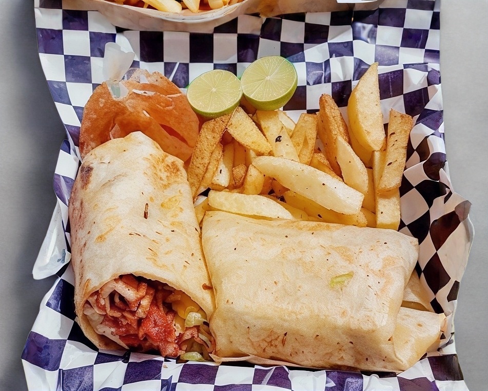 Burrito de Milanesa*1 + Queso Carne de Milanesa( 2 tortillas de harina con queso)(limones y salsa)+ Papas a La Francesa*1(Valentina queso capsu)