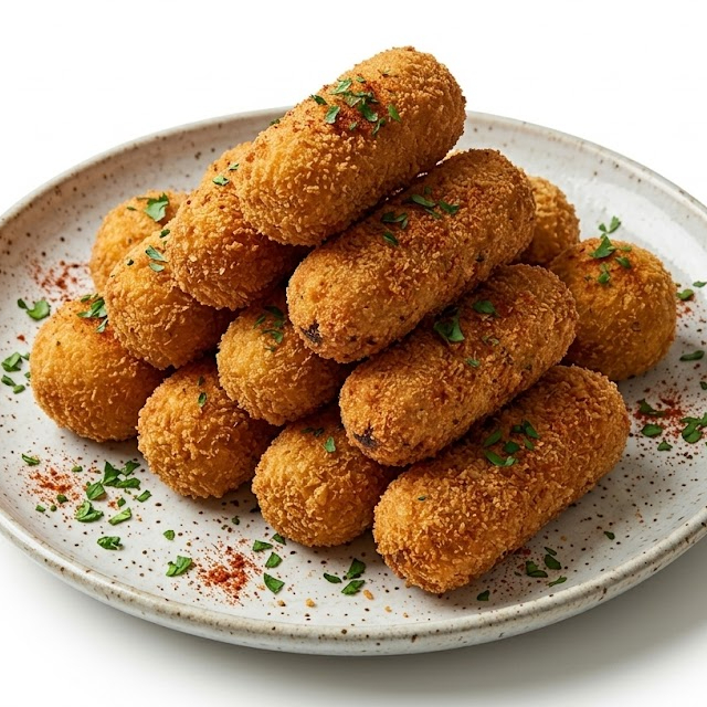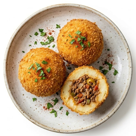 12 croquetas doraditas, crujientes por fuera y cremosas por dentro, rellenas con carne sazonada al estilo cubano. Perfectas para compartir… o no