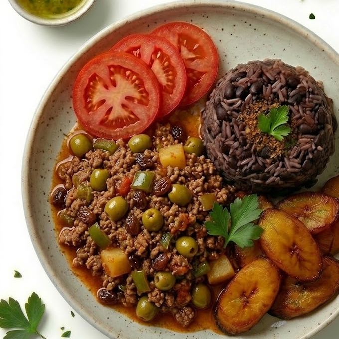 Carne molida de res sazonada al estilo cubano, cocinada lentamente con ese sabor casero que nunca falla. Servido con moros y cristianos, vegetales y plátanos maduros fritos para un plato completo, equilibrado y lleno de tradición.