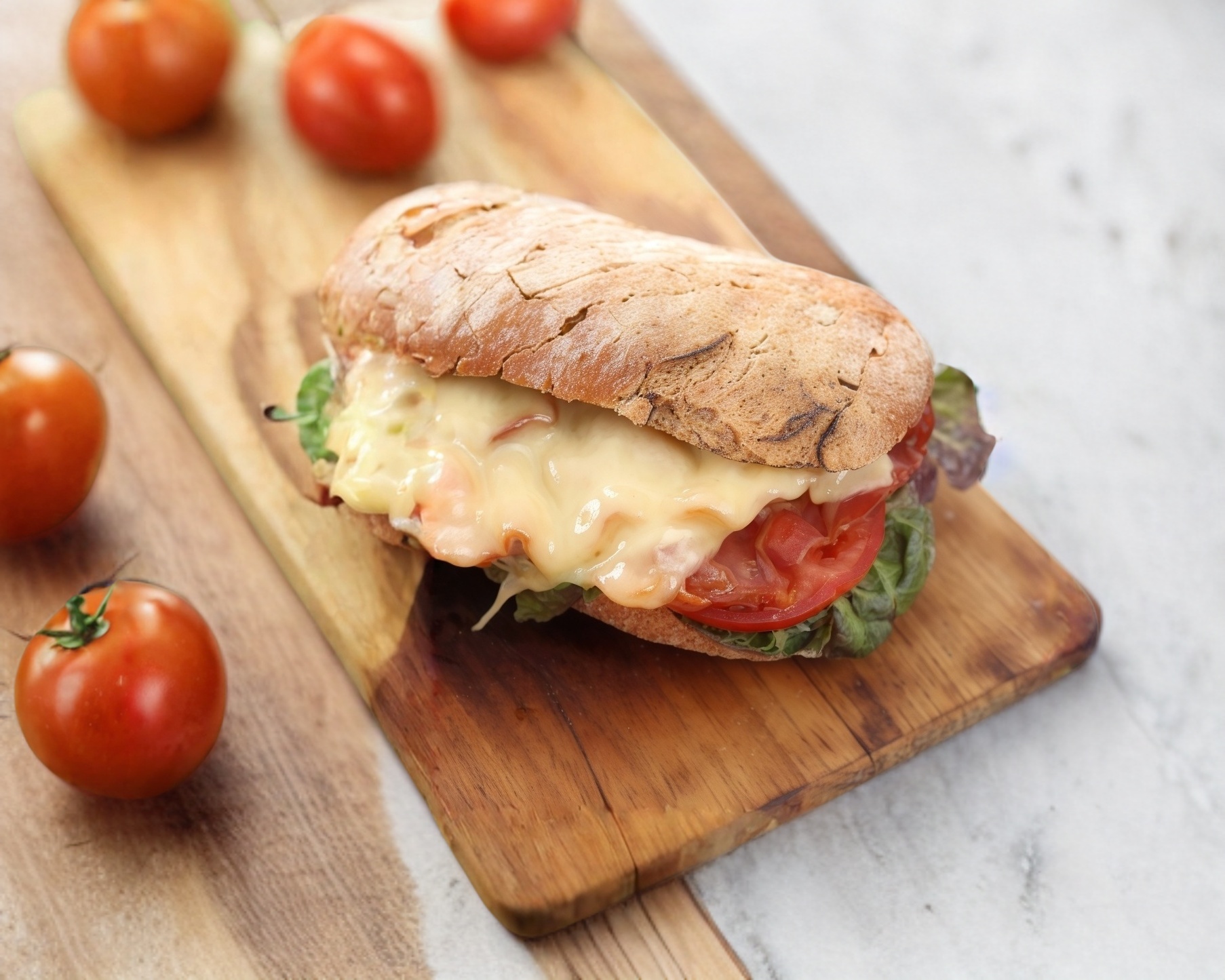 Pan gourmet con queso manchego, queso oaxaca y queso amarillogratinados, fresca lechuga italiana, jugoso jitomate, aguacate, mayonesa y frijoles. Nota: Al elegir pico de gallo, este se enviará en todos los casos con jitomate, cebolla y chile sin excepción.