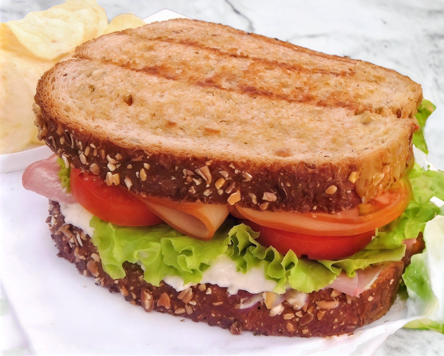 Sándwich con jamón de pechuga de pavo, queso manchego gratinado, fresca lechuga italiana, jugoso jitomate, aguacate, mayonesa y frijoles. Nota: Al elegir pico de gallo, este se enviará en todos los casos con jitomate, cebolla y chile sin excepción.