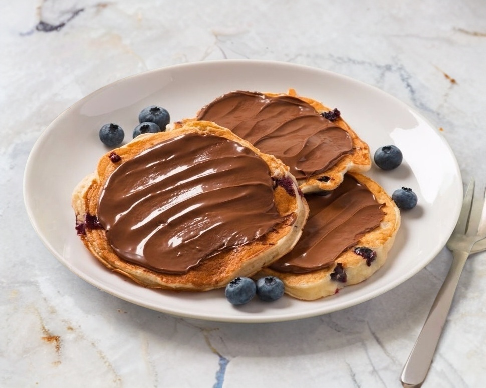 Hot cakes de 10-12 cm (6 piezas) con nutella acompañados de lo que más te guste.