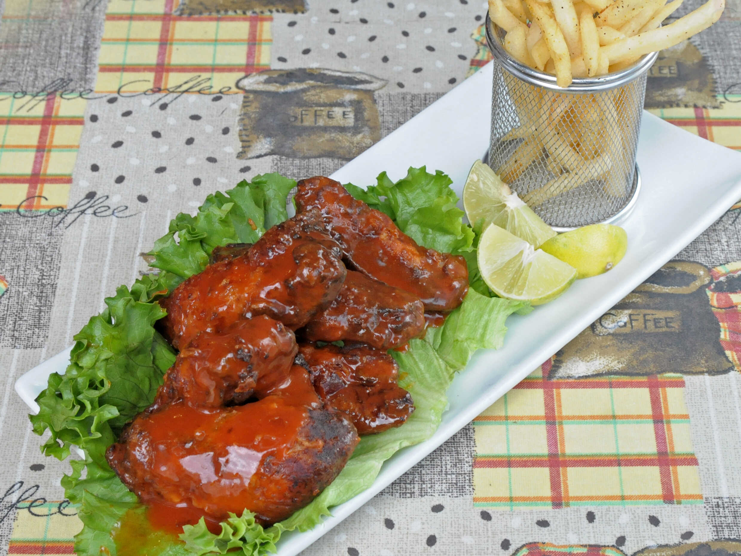Tiras de pollo sazonada en salsa bbq, montado en nuestro pan artesanal acompañado de queso gouda, mayonesa de la casa,lechuga,jitomate,cebolla morada y picante