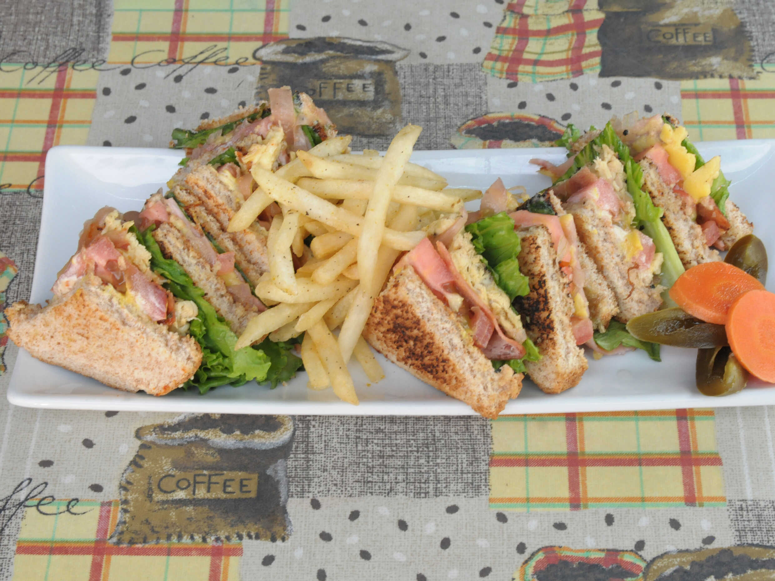 Deliciosa combinacion de piña, jamon y queso, montada sobre pan artesanal con nuestra mayonesa de la casa,acompañada de lechuga,jitomate, picante y cbolla morada