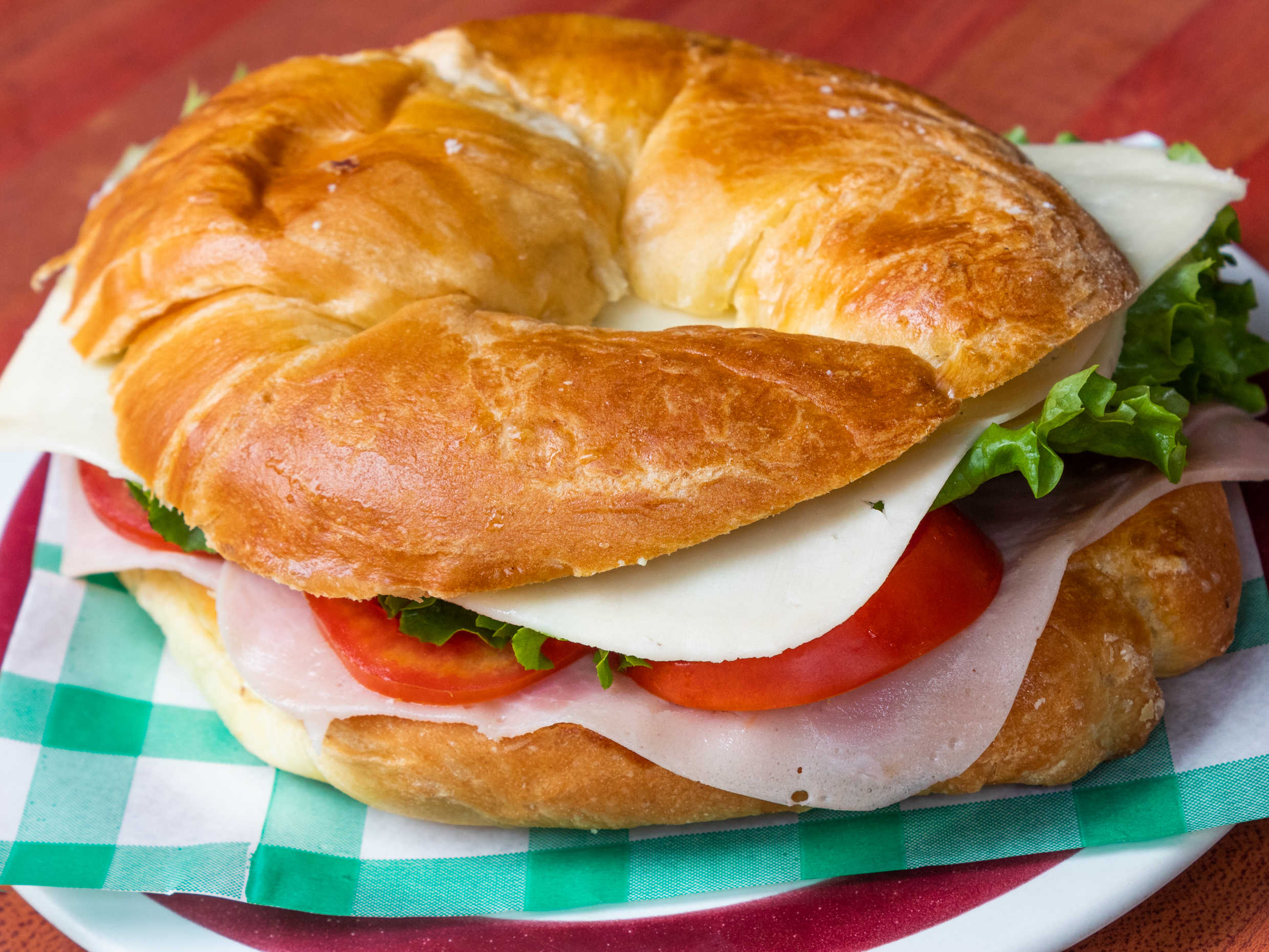 Baguette de jamón con queso Philadelphia. Verdura, jitomate, aguacate lechuga.