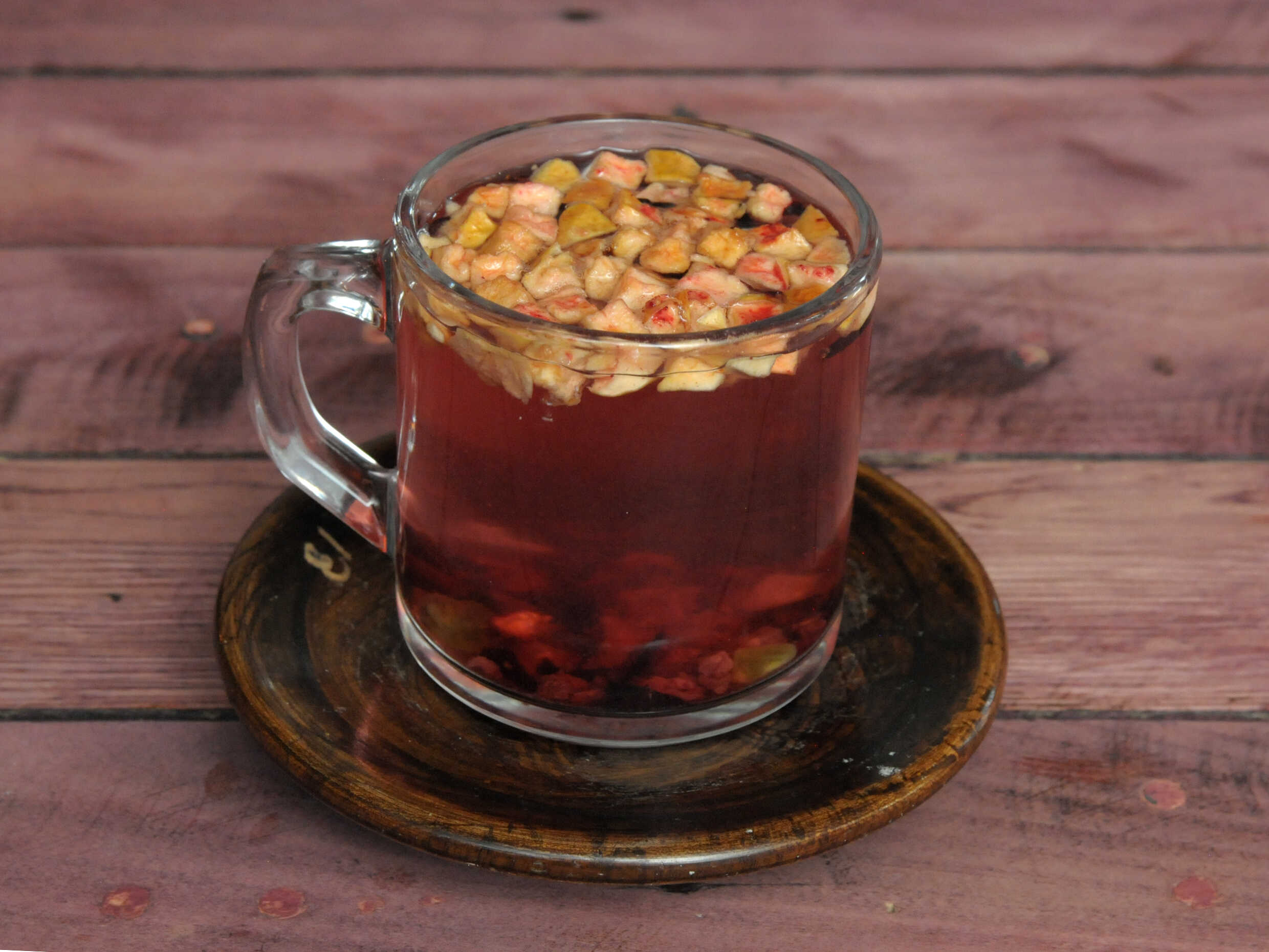 Infusión de frutos secos. Todas llevan manzana, jamaica, betabel y pasas
