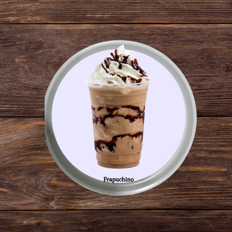 Bebida a base de frapuchino, leche deslactosada light, crema batida, hielos, granillo de turín, galleta, chocolate líquido.