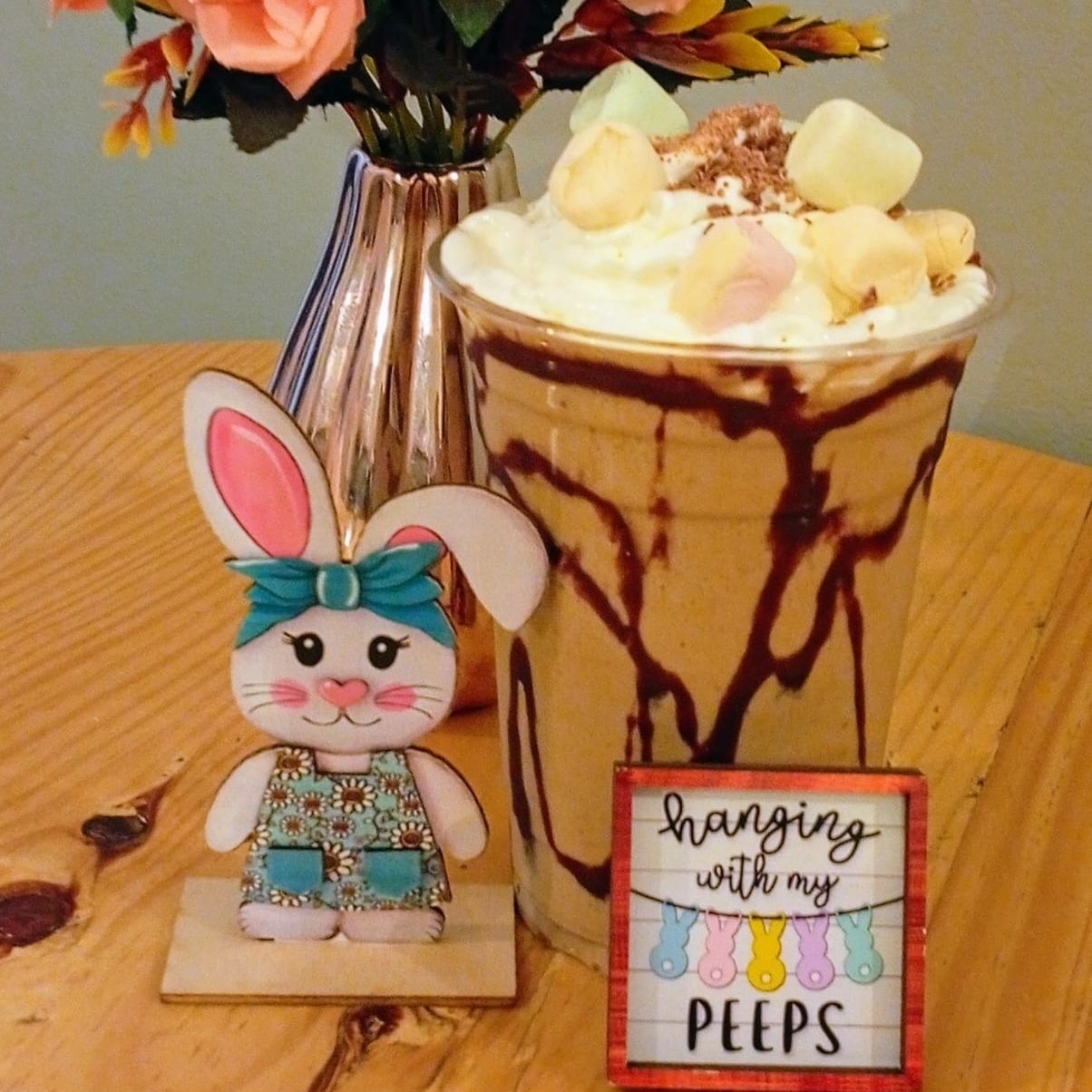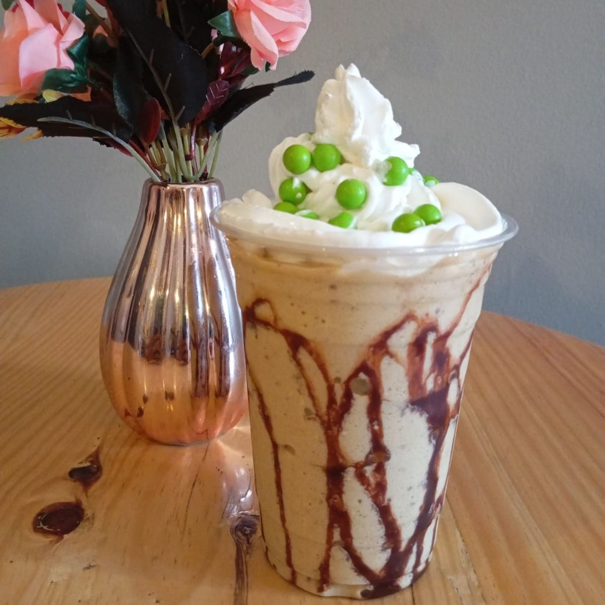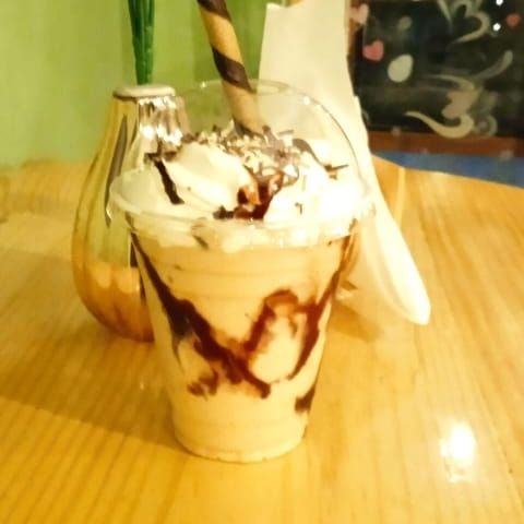 Bebida a base de hielos, con base moka,leche deslactosada, chocolate Hershey's líquido para decorar.