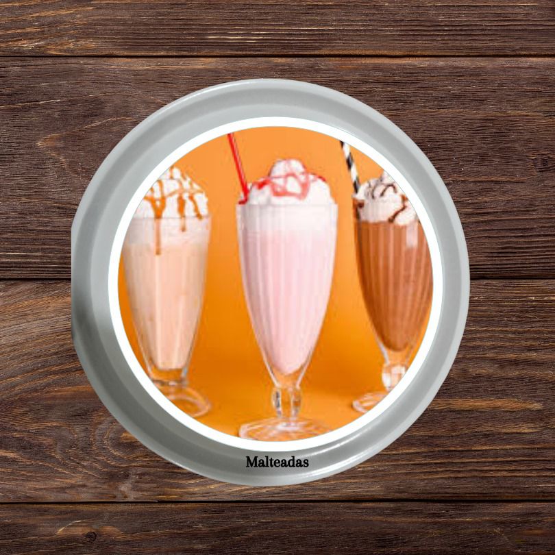 Bebida fria,froxty para malteada, leche deslactosada light, crema batida,chocolate líquido, granillo alpezzi, wafer de chocolate de adorno.