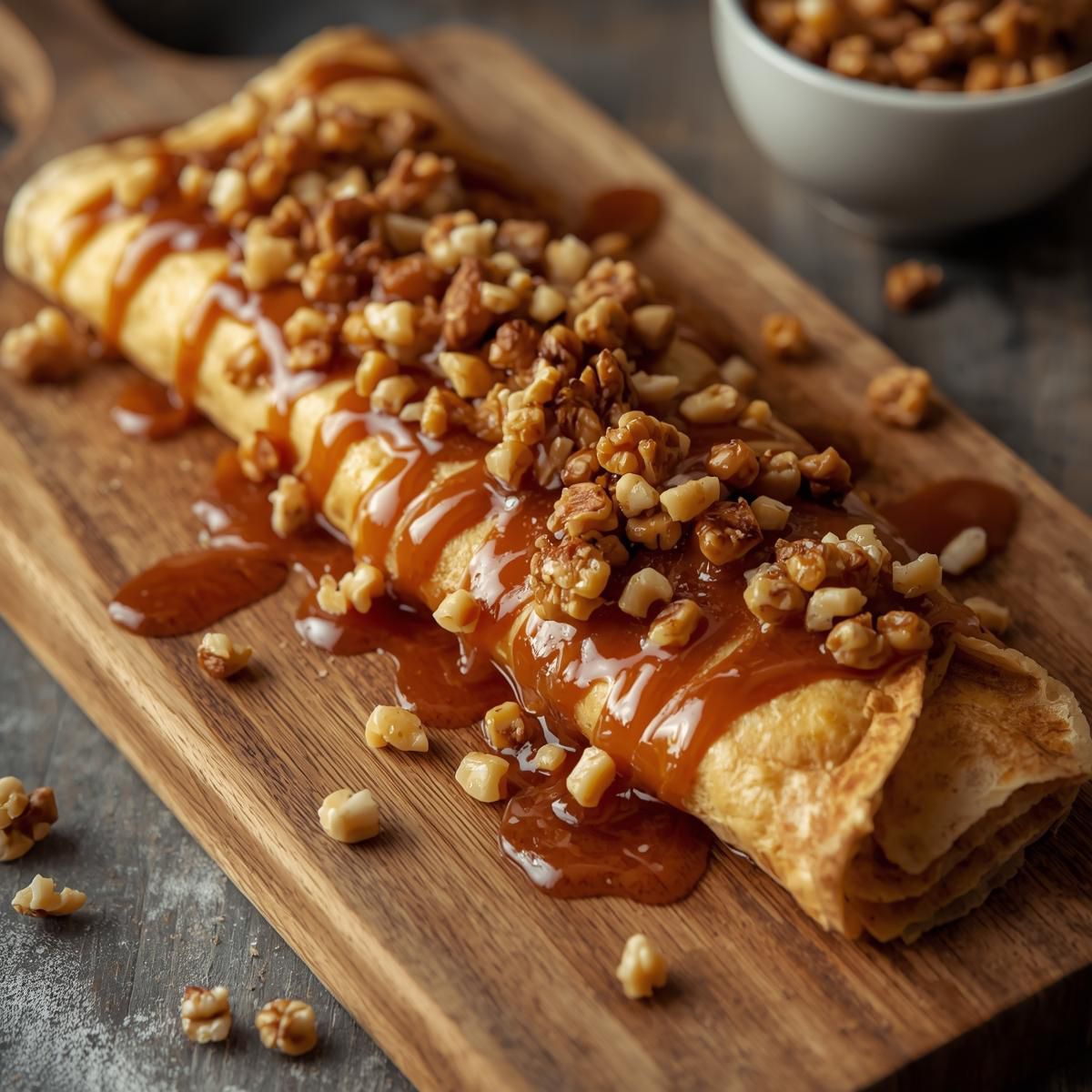 Crepa de filadelfia,cajeta,plátano,nuez,helado