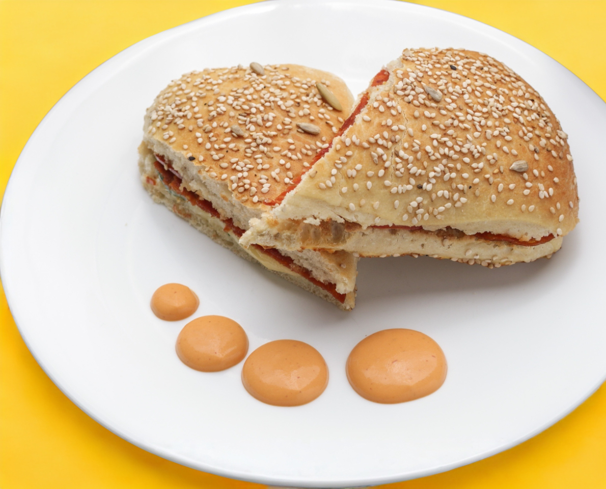 Chorizo español, queso manchego, mayonesa, pepino y jitomate.