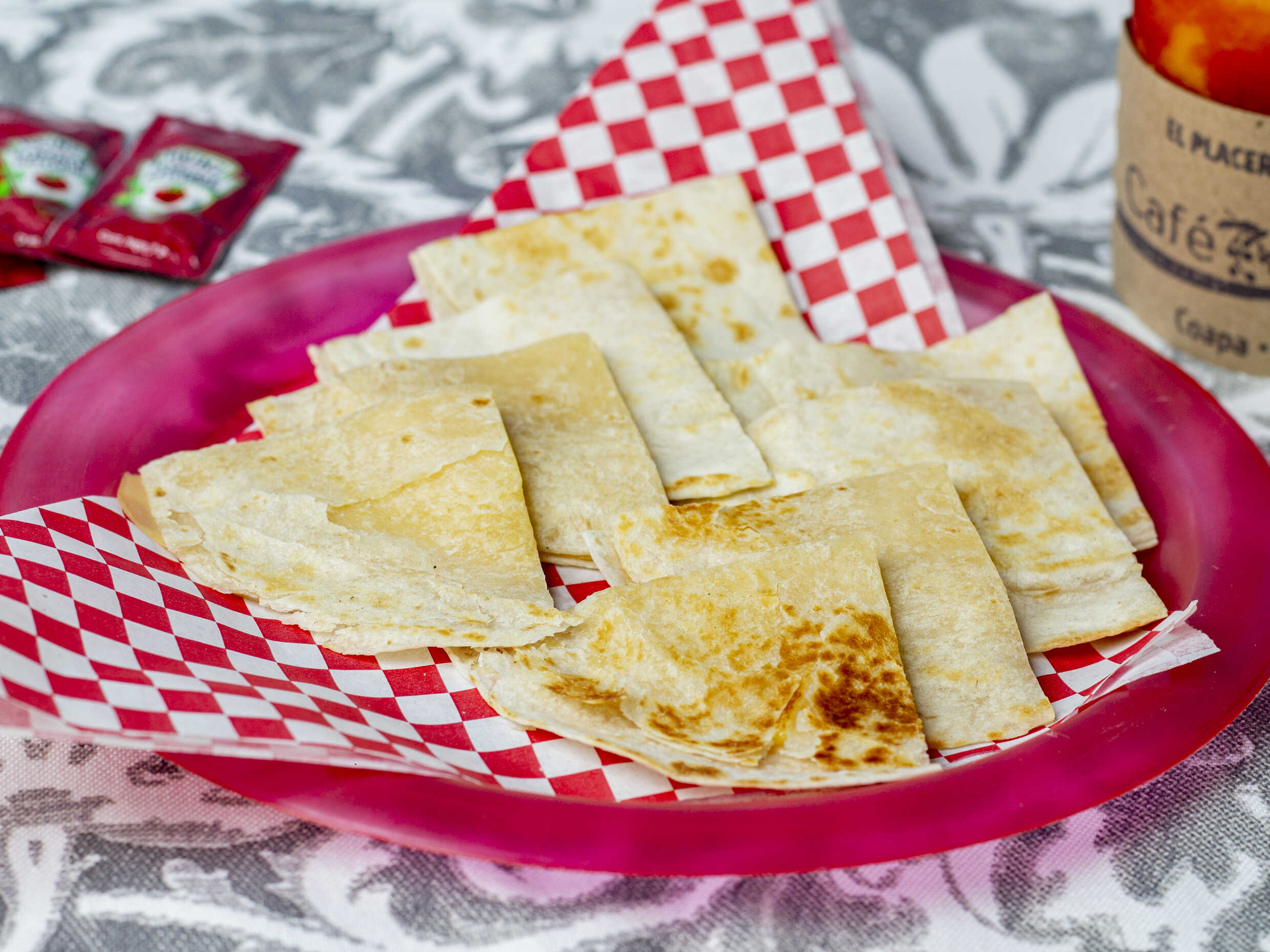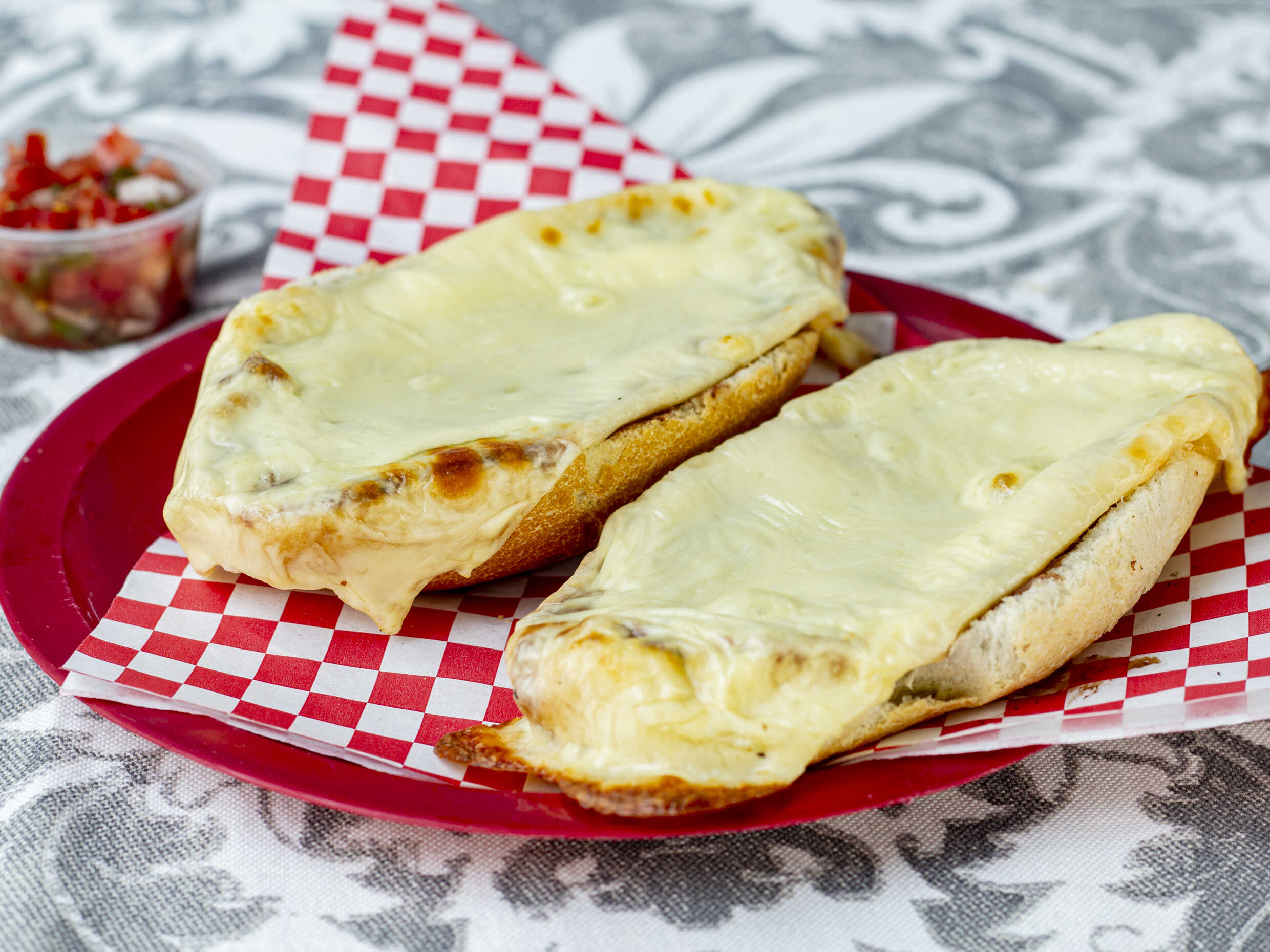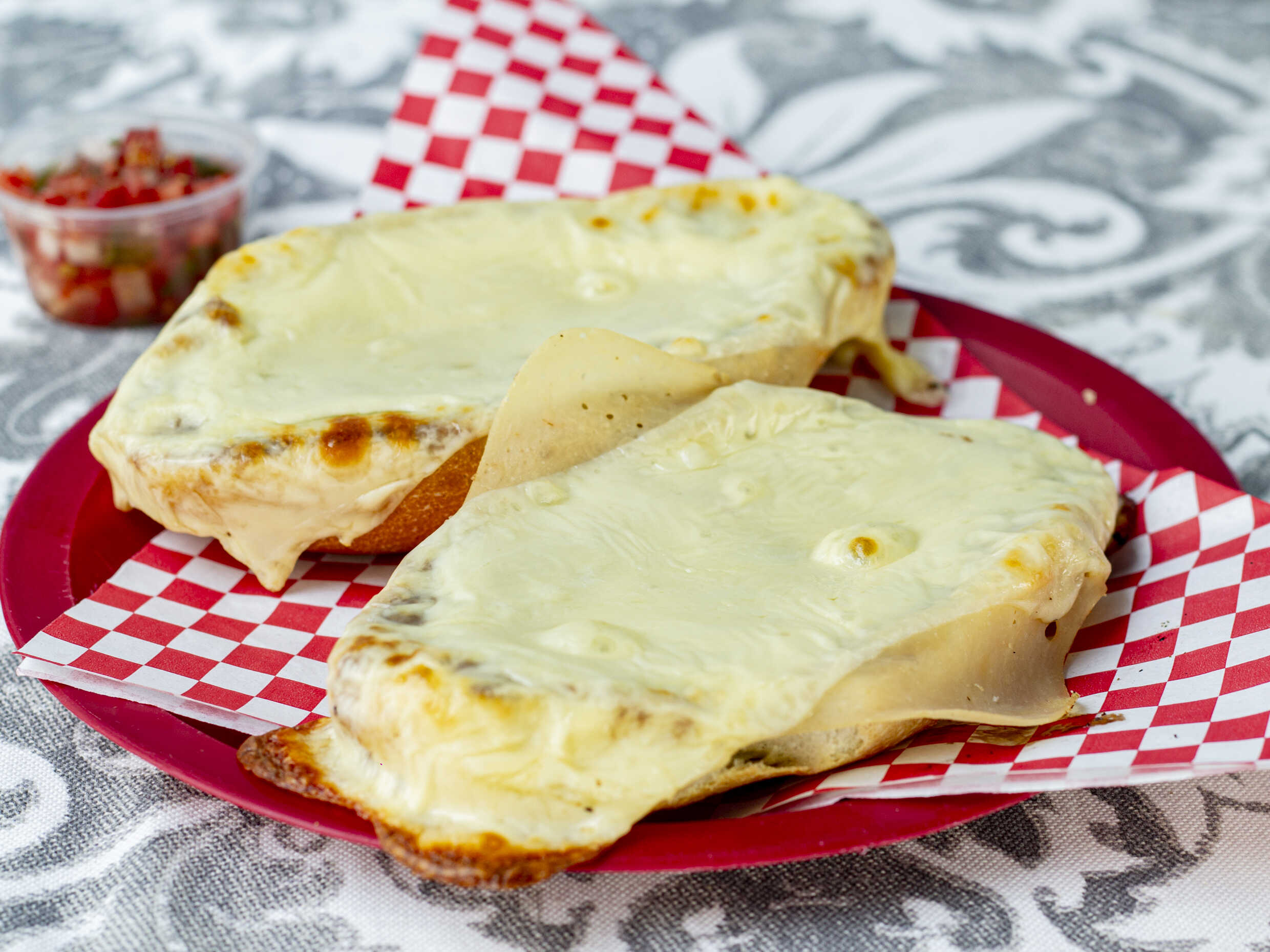 La orden incluye dos sincronizadas, cada una con jamón y queso manchego. Se acompañan de salsa de tomate.