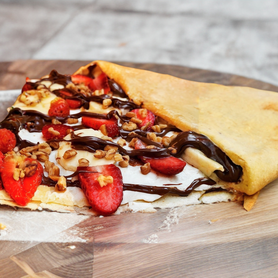 Crepa de 40cm de diámetro (20cm ya en triangulo) Rellena con ingredientes a tu gusto. (Toppings adicionales con costo extra)