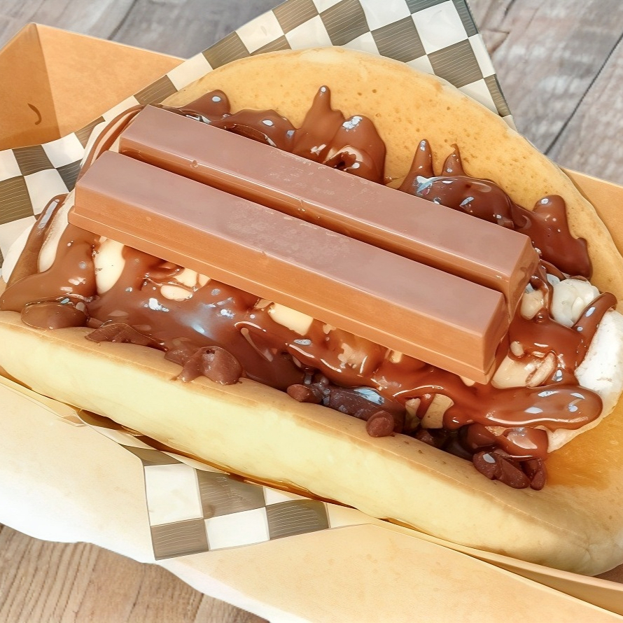Delicioso hotcake suave y esponjoso, doblado al estilo taco, relleno de ingredientes seleccionados por ti.