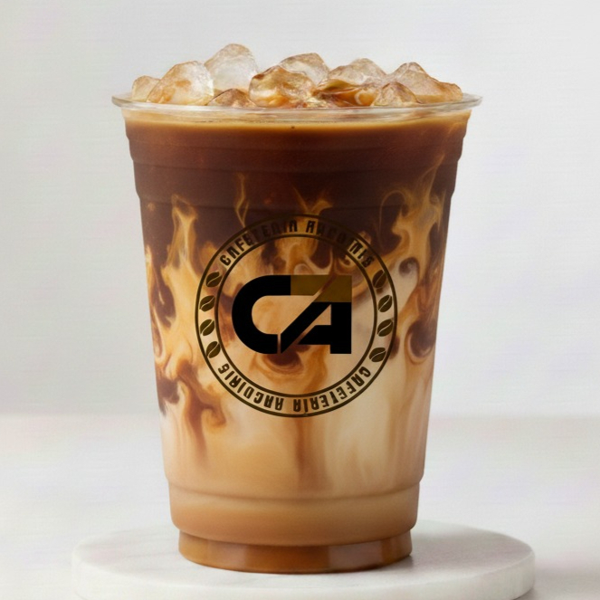 Café con hielo, leche deslactosada, cacao, azúcar y un ligero toque de canela.