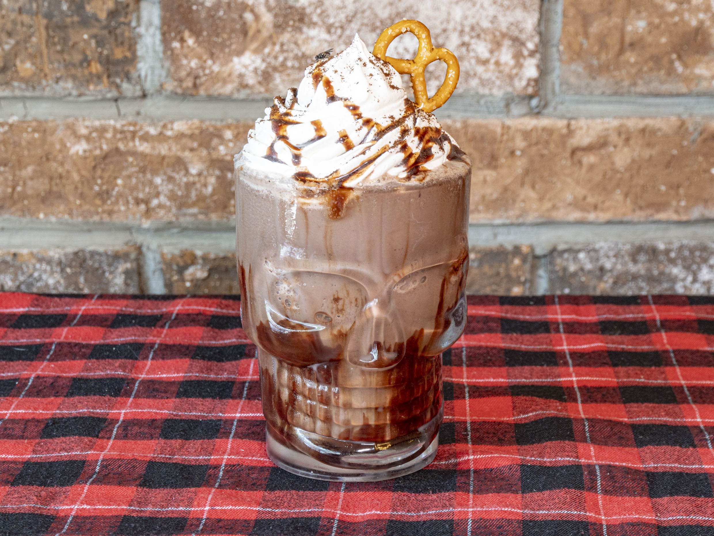 Base de hielo, leche espumado con matcha, jarabe de menta y cold brew.