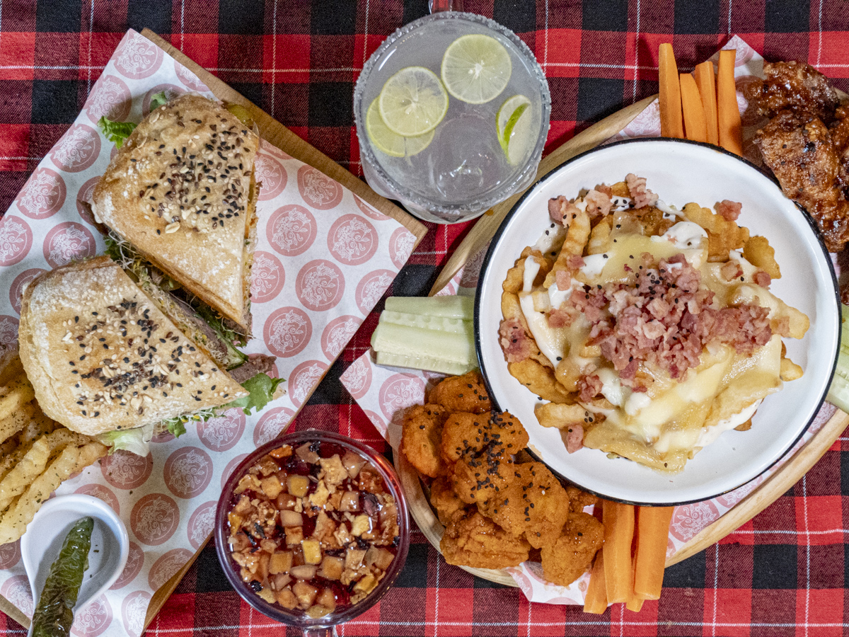 Papas a la francesa con queso gouda derretido, trocitos de tocino, aderezo ranch y perejil fresco.
