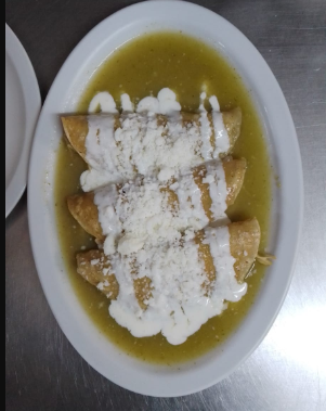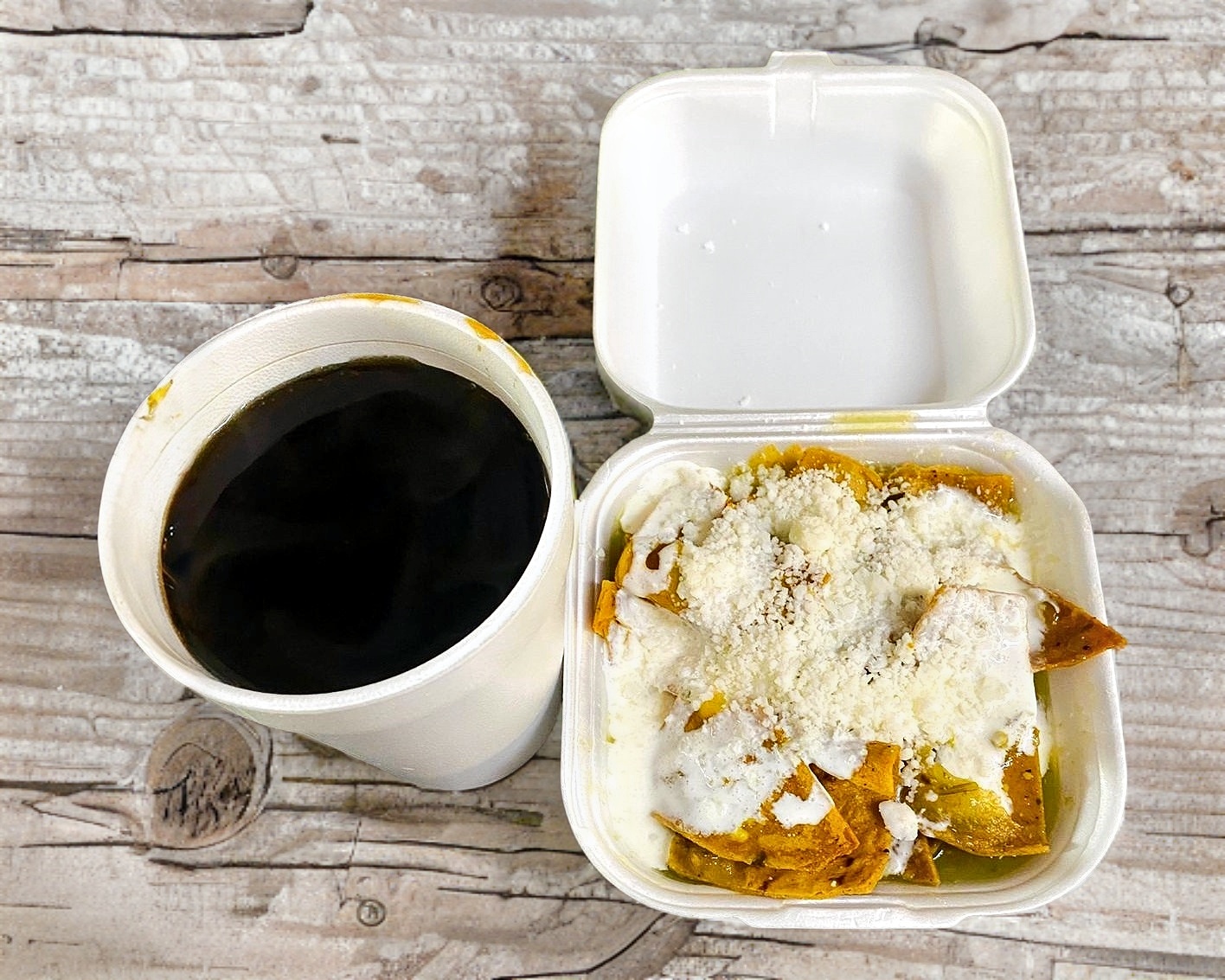 el cual incluye: chilaquiles con pollo( 130 gramos aprox) frijoles refritos, tortilla ,bolillo ( 1 unidad) , cebolla, bañados con salsa verde. platillo para una persona,