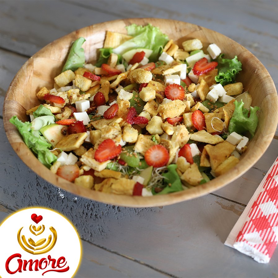 Lechuga italiana, fruta de temporada, pollo y aderezo