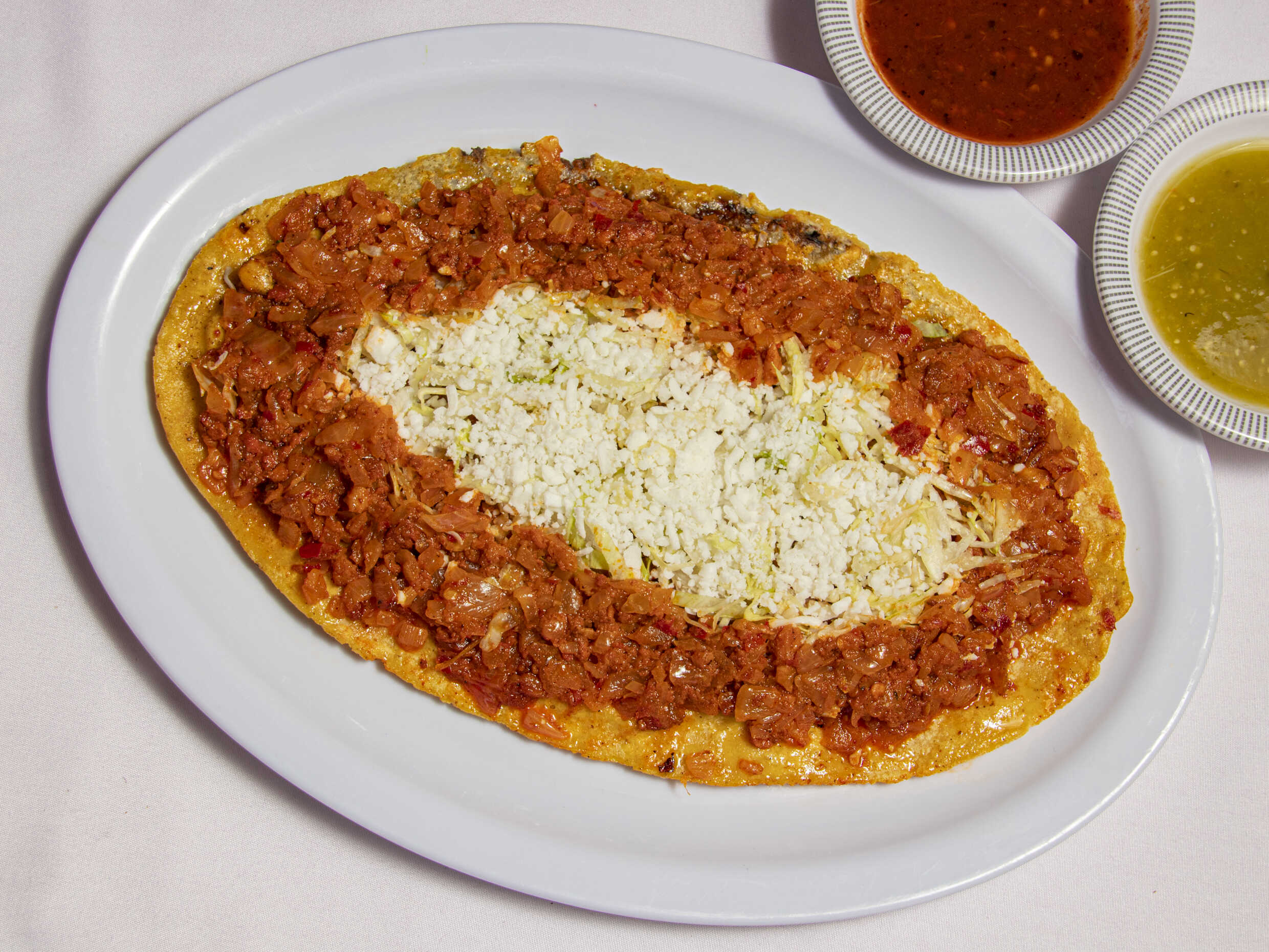 Sope con frijoles y guisado de su preferencia con lechuga y queso rallado