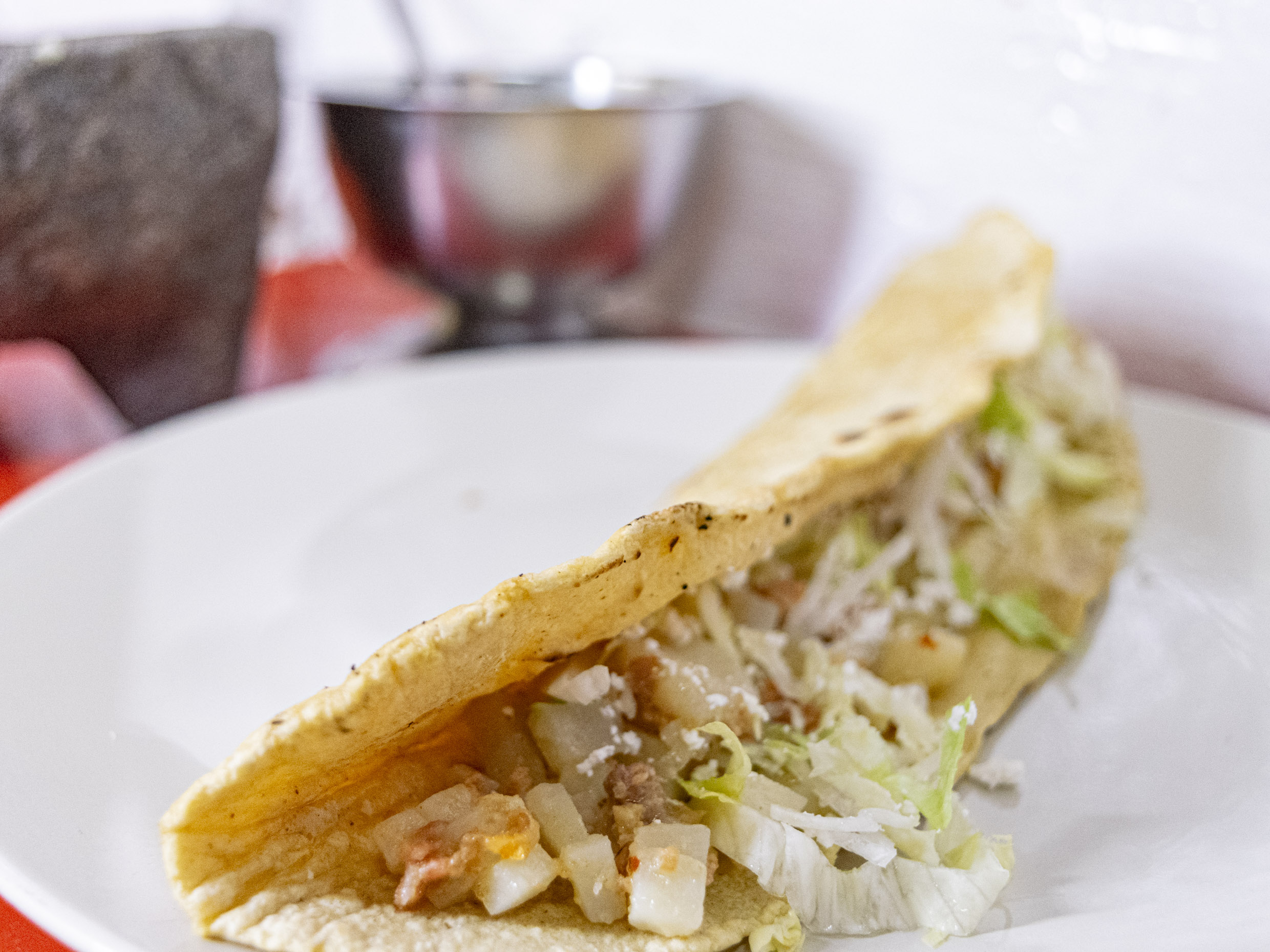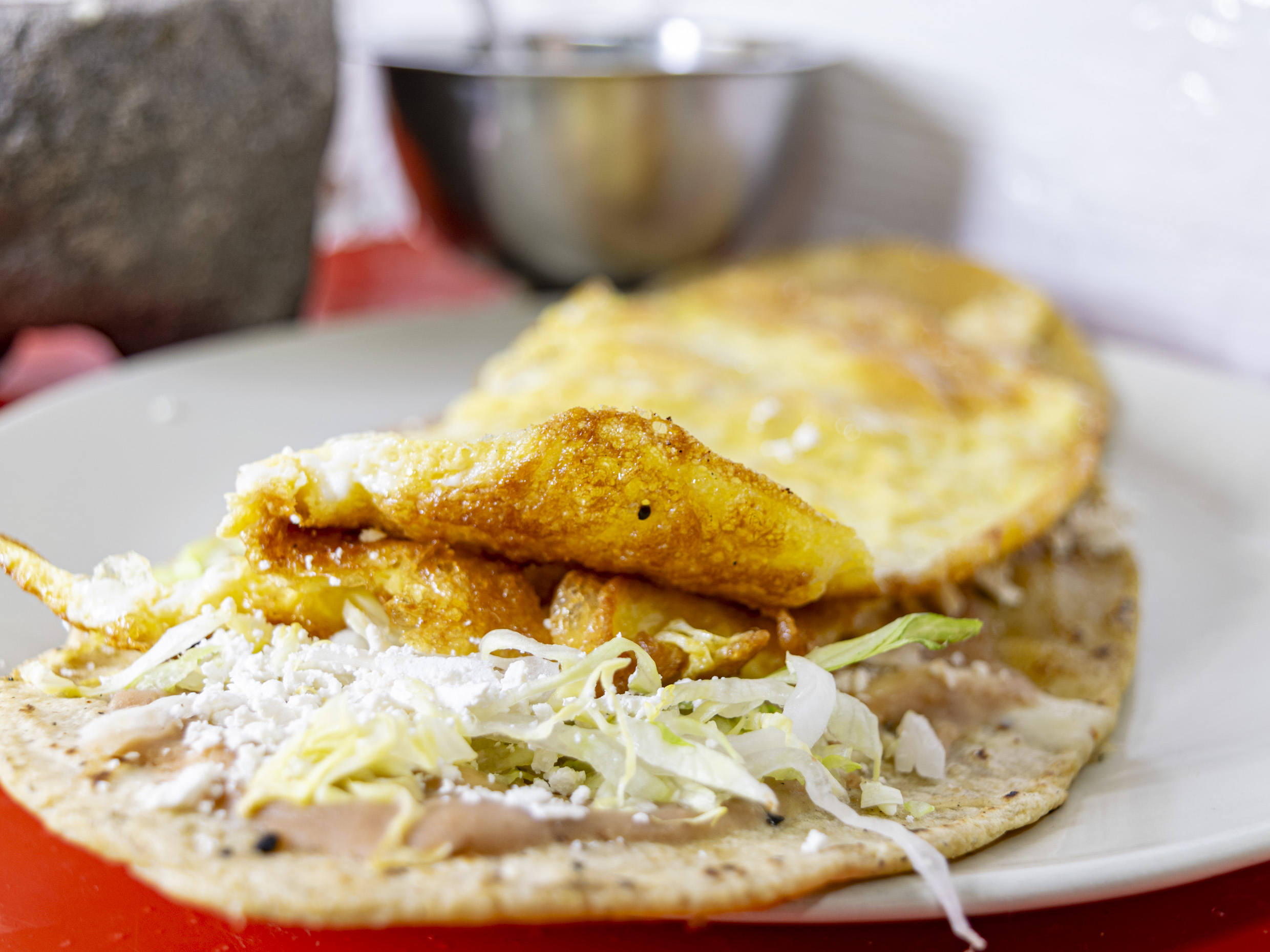 Lechuga, frijoles, cebolla y queso ranchero.
