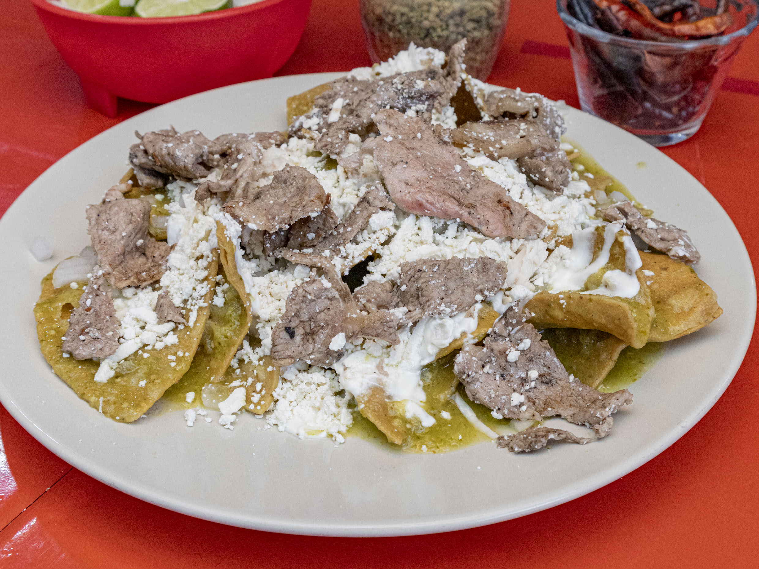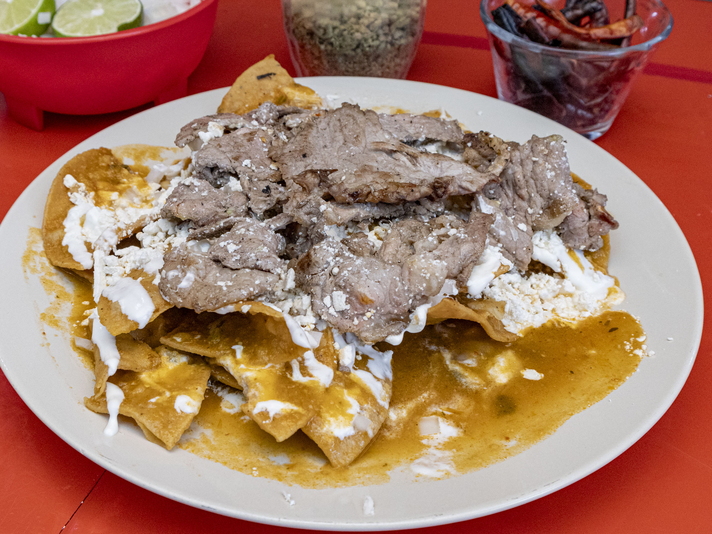 Chilaquiles Rojos con Bistec
