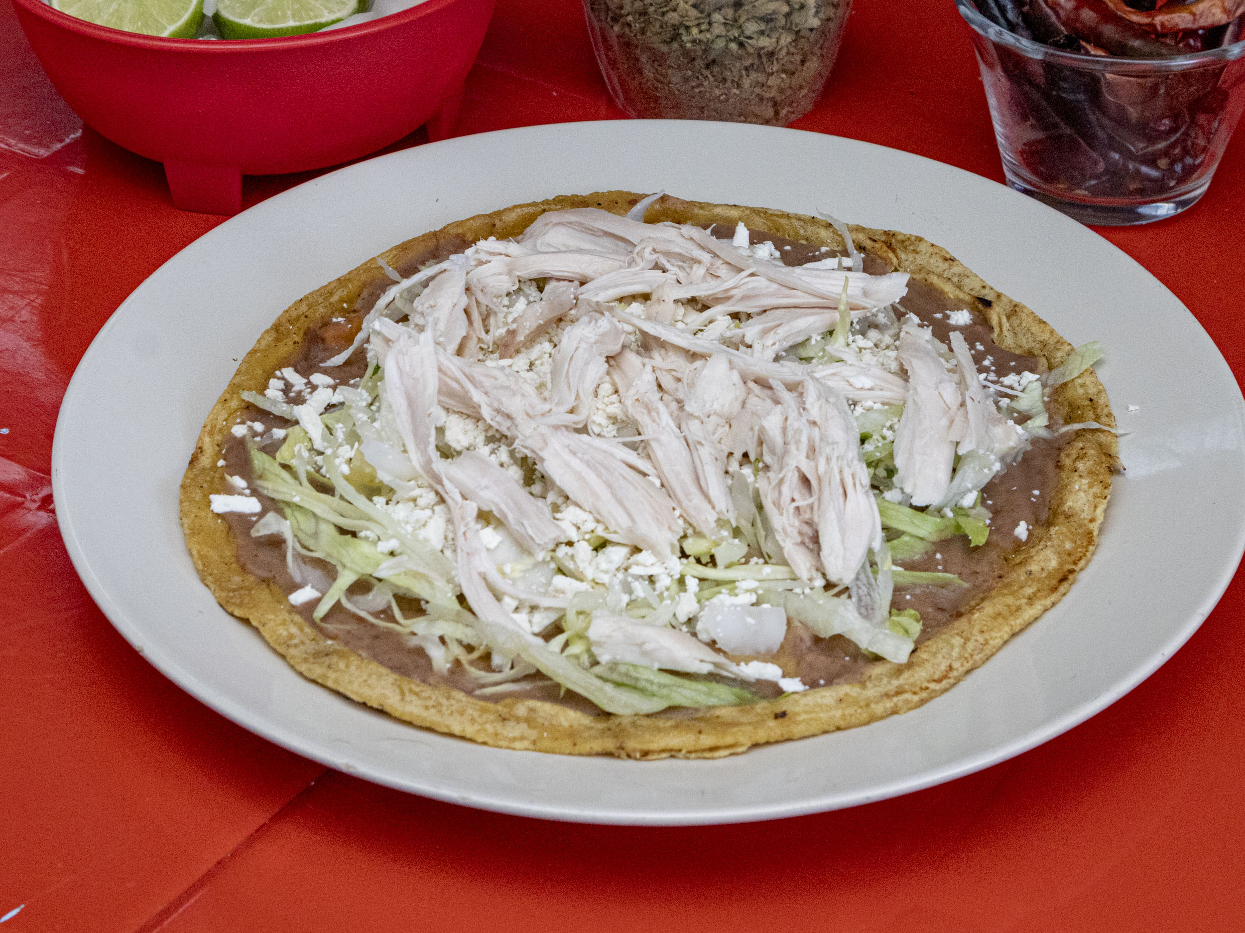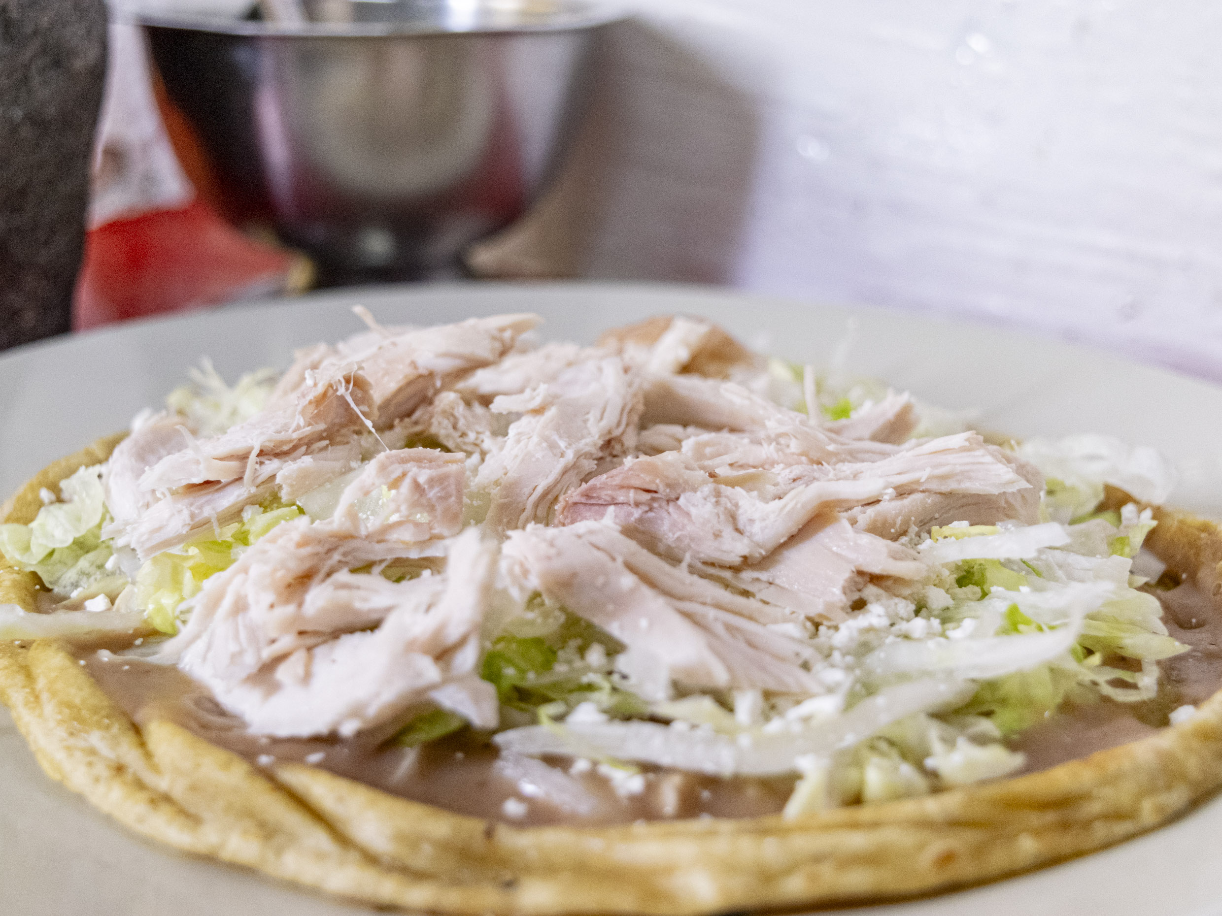 Tostada de Tinga de Pollo