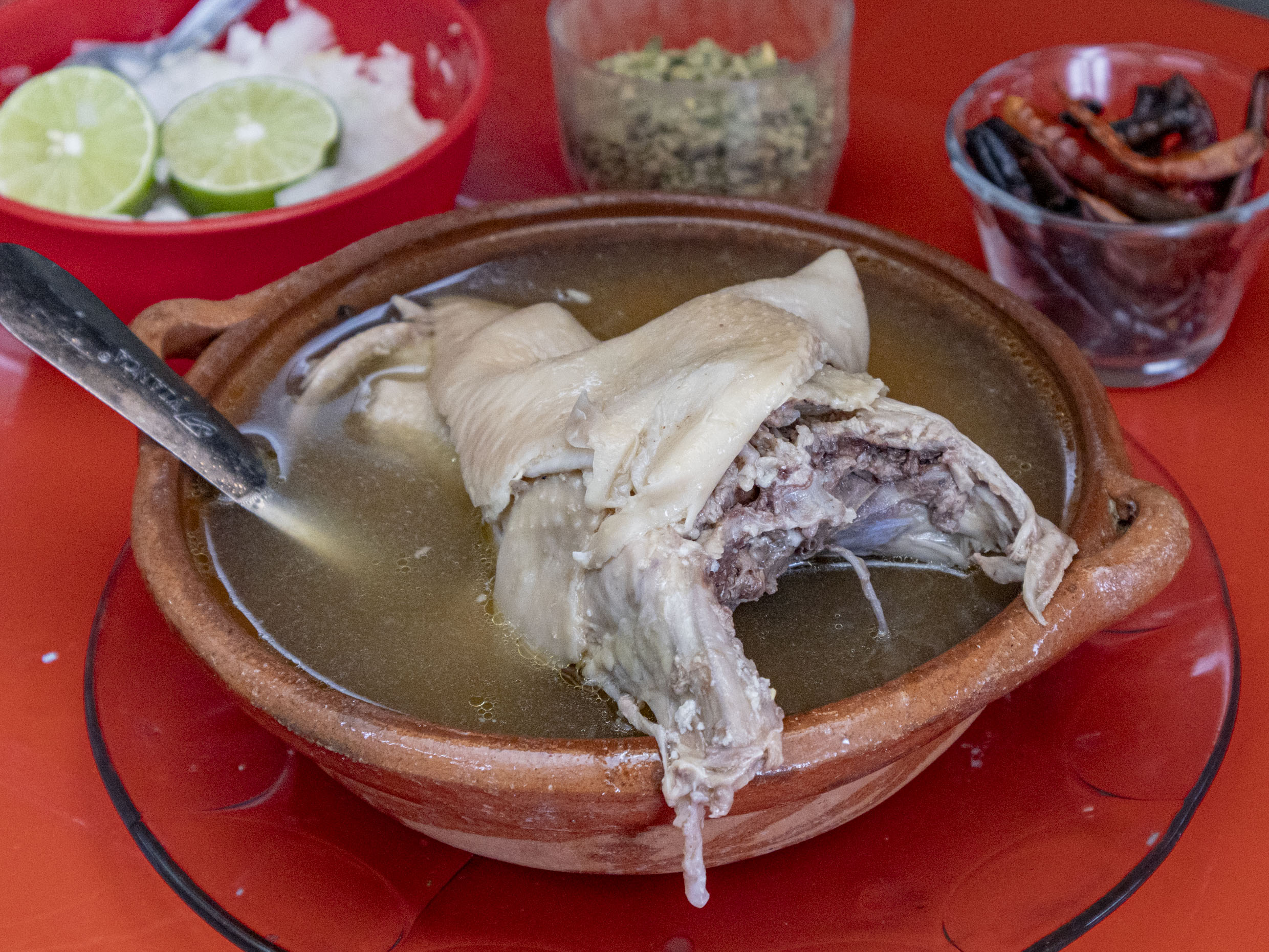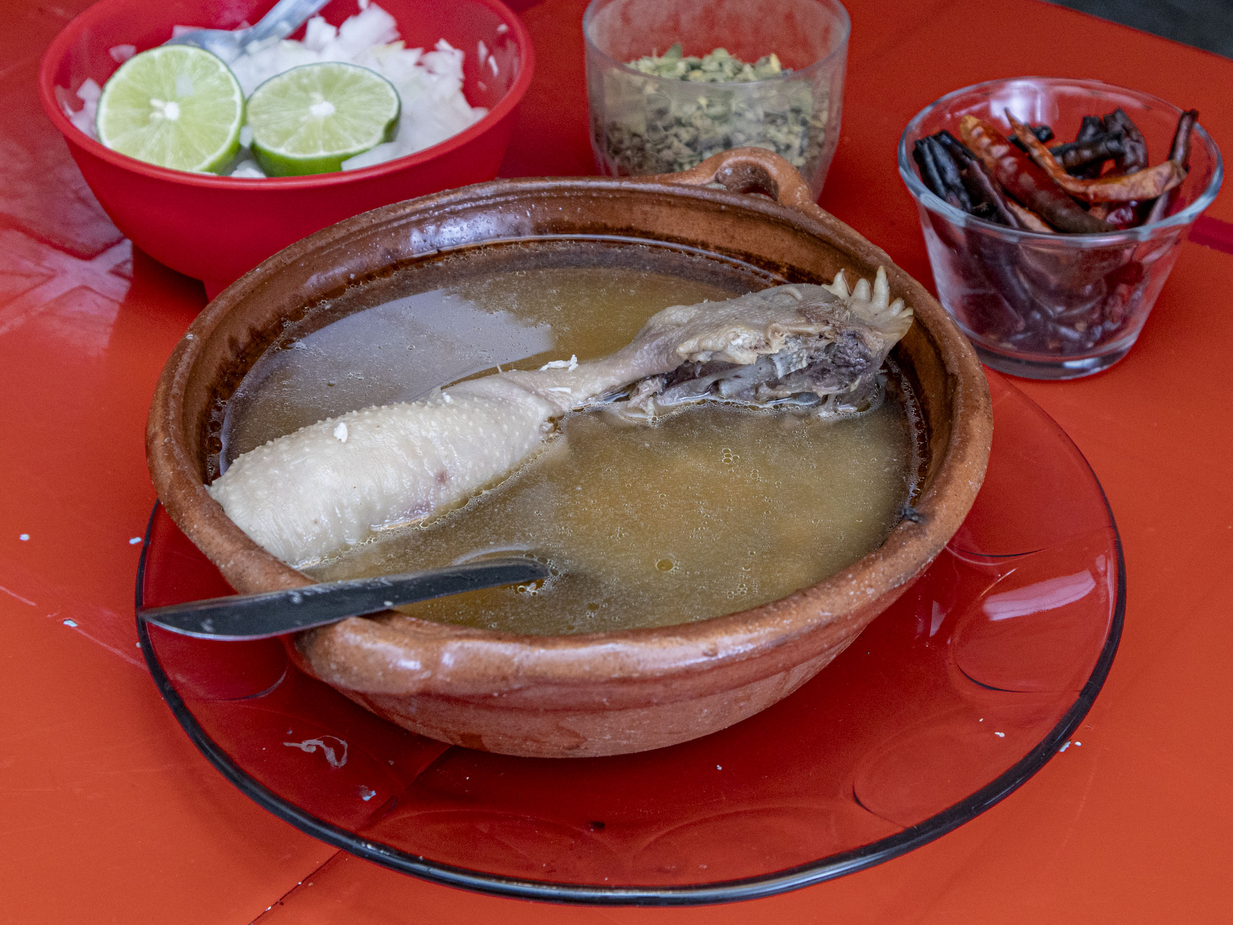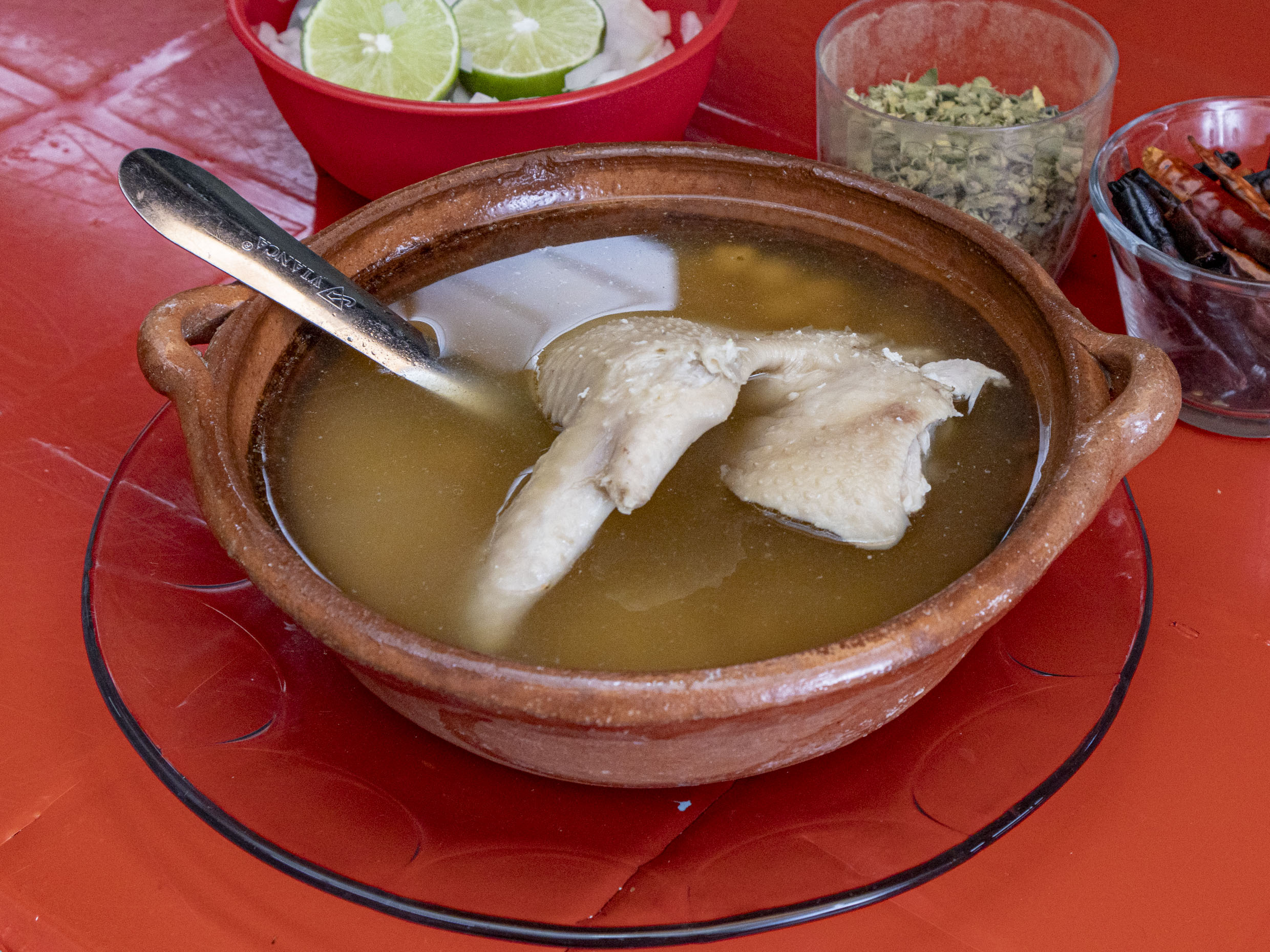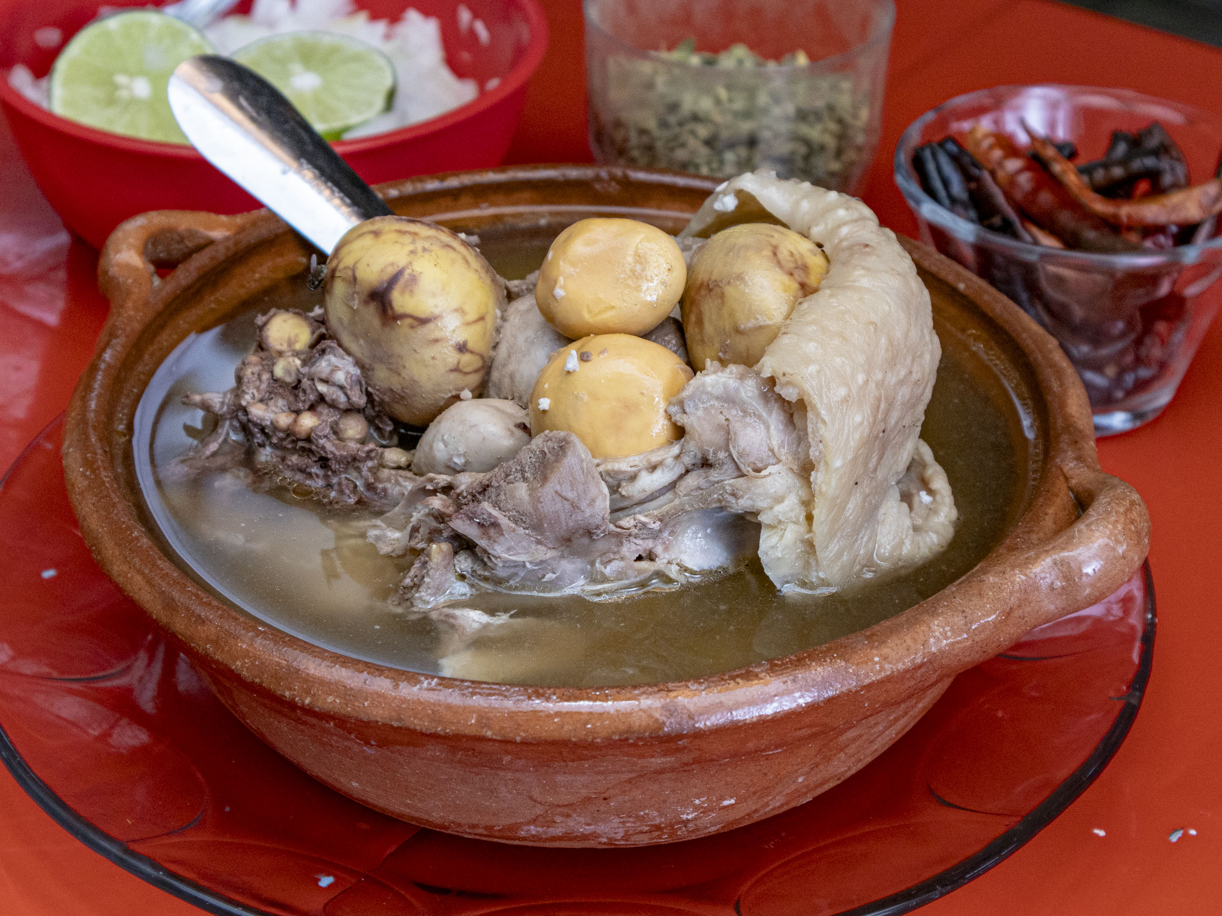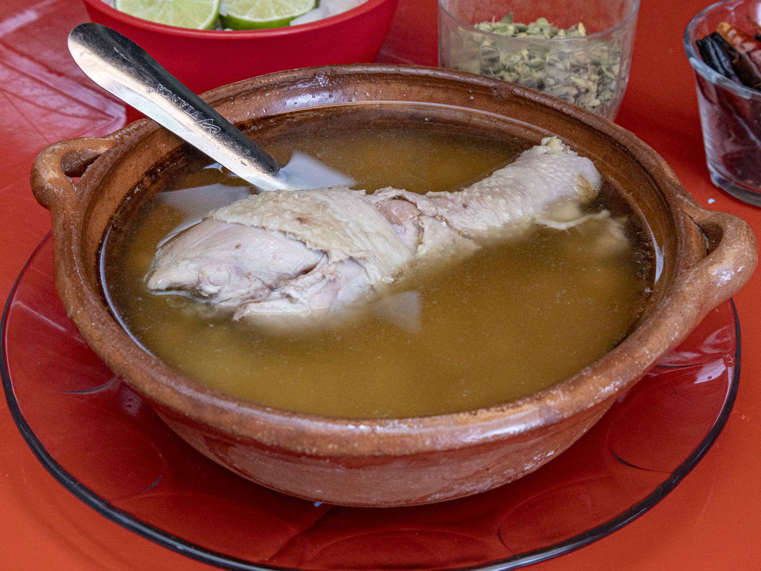 Caldo de gallina con huacal.
