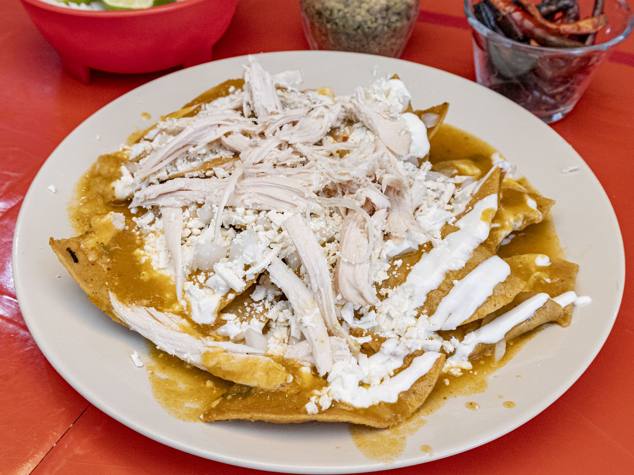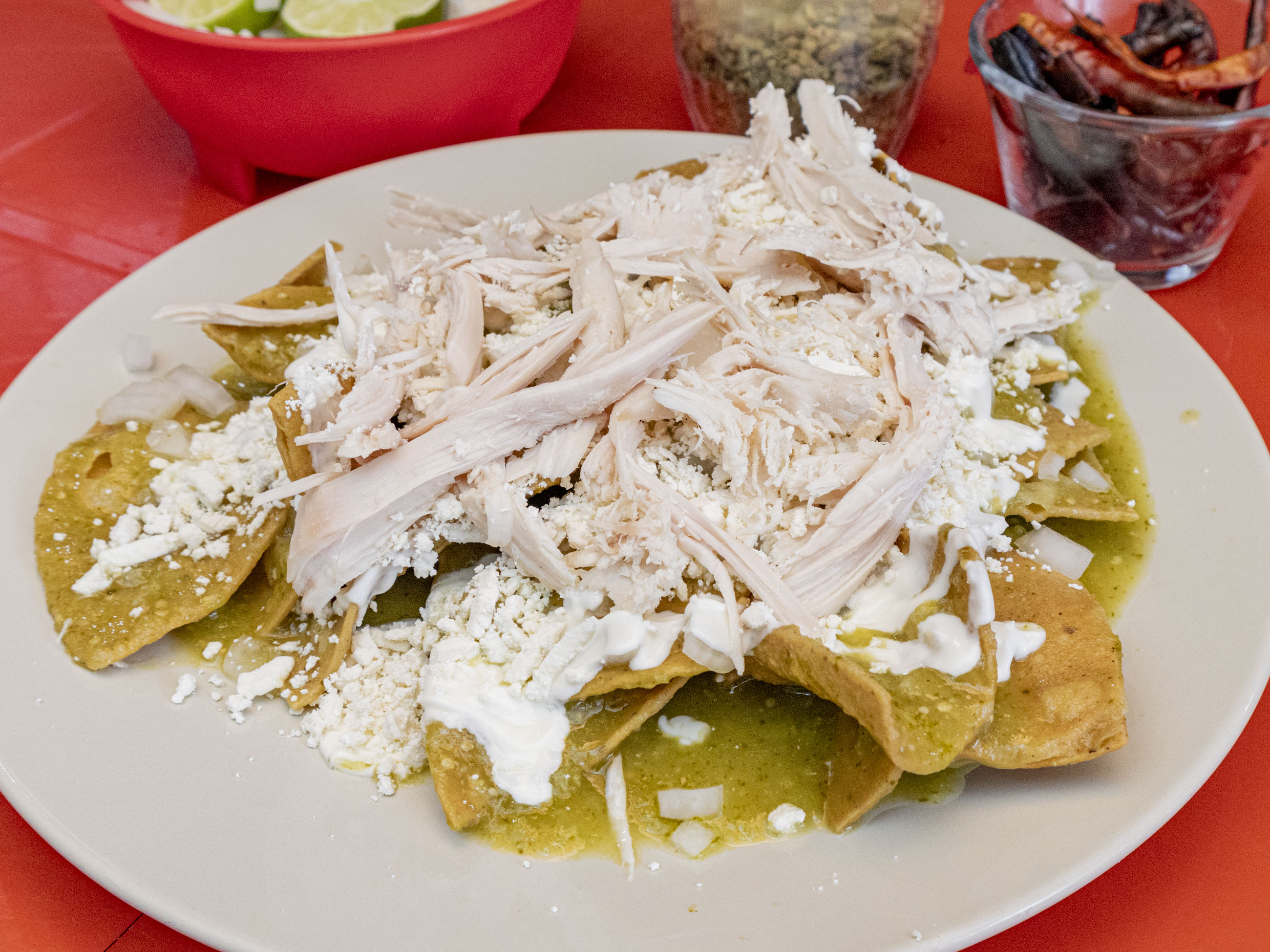 Chilaquiles Rojos con Pechuga