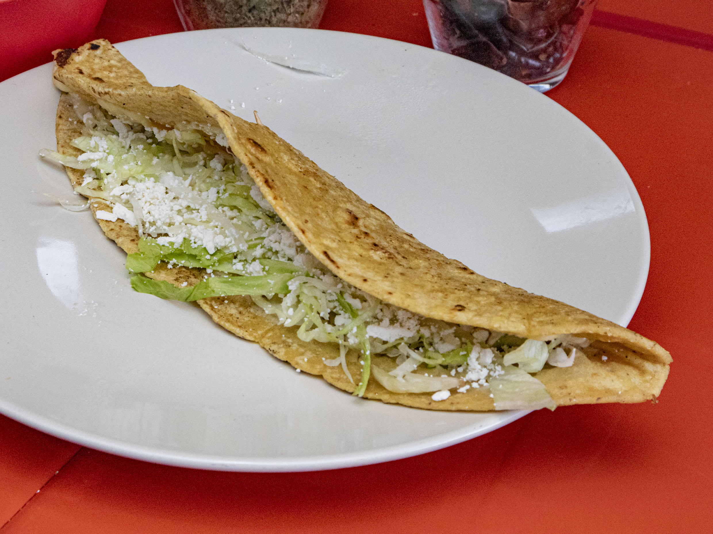 Lechuga cebolla y queso ranchero.