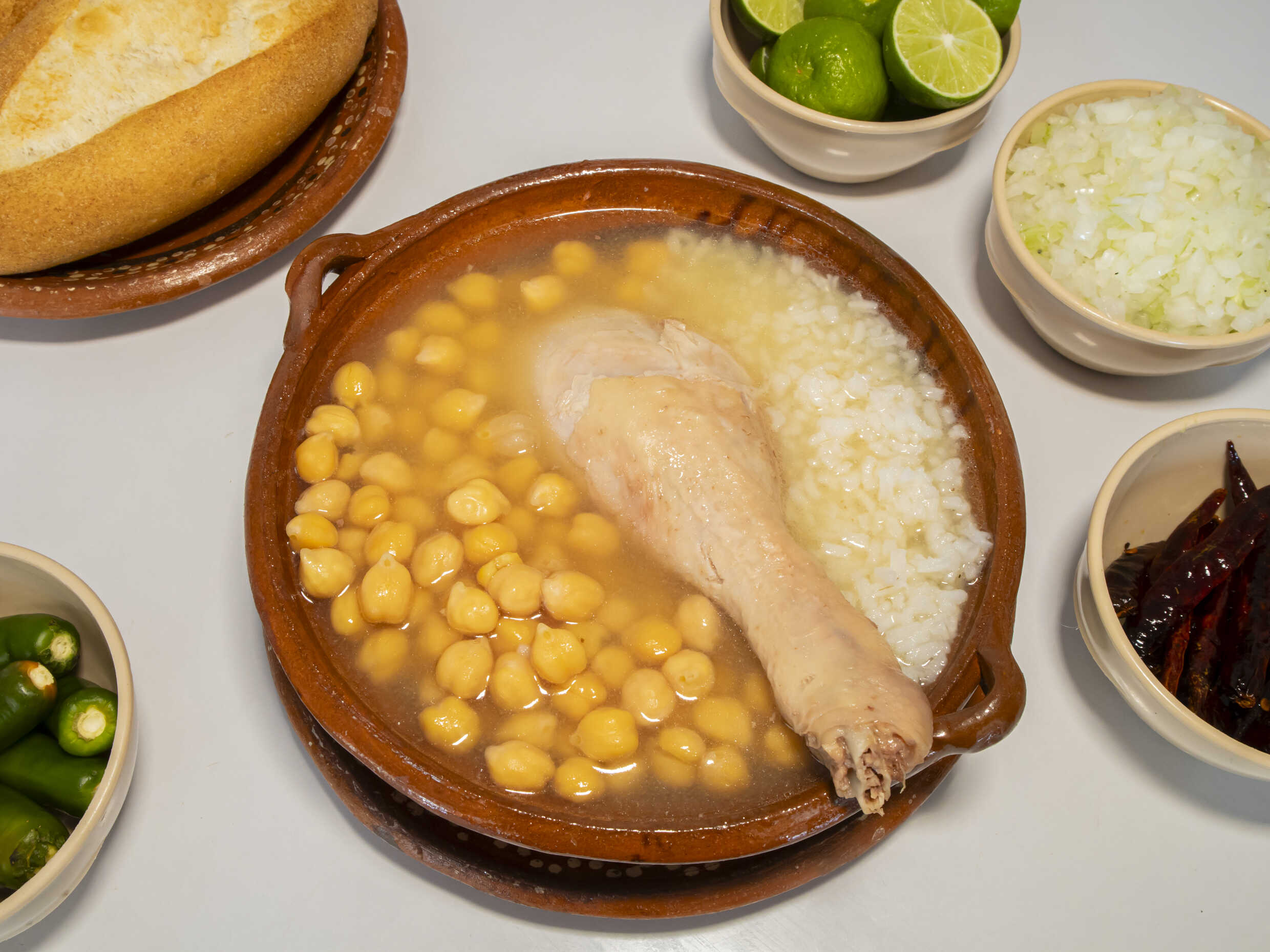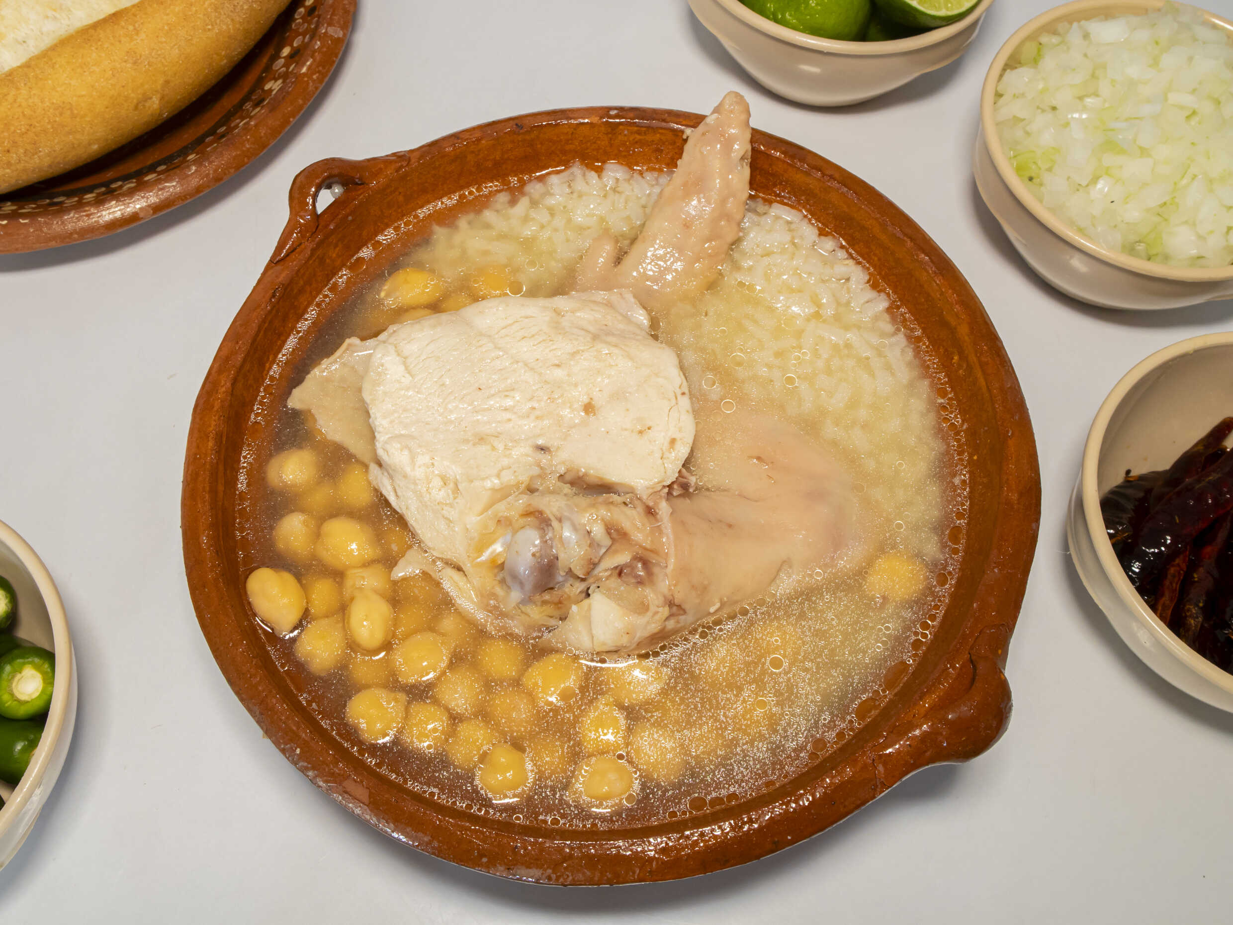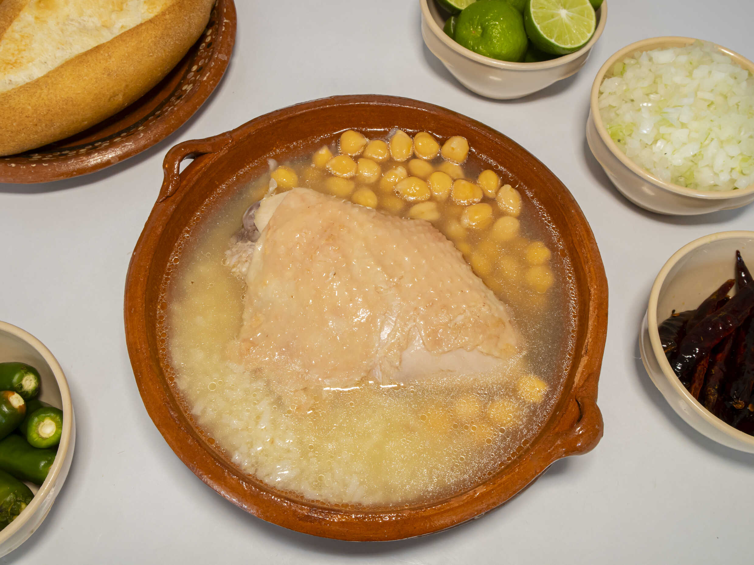 Un delicioso caldo de gallina con muslo, lleno de sabor casero y perfectamente sazonado para brindarte una experiencia reconfortante.