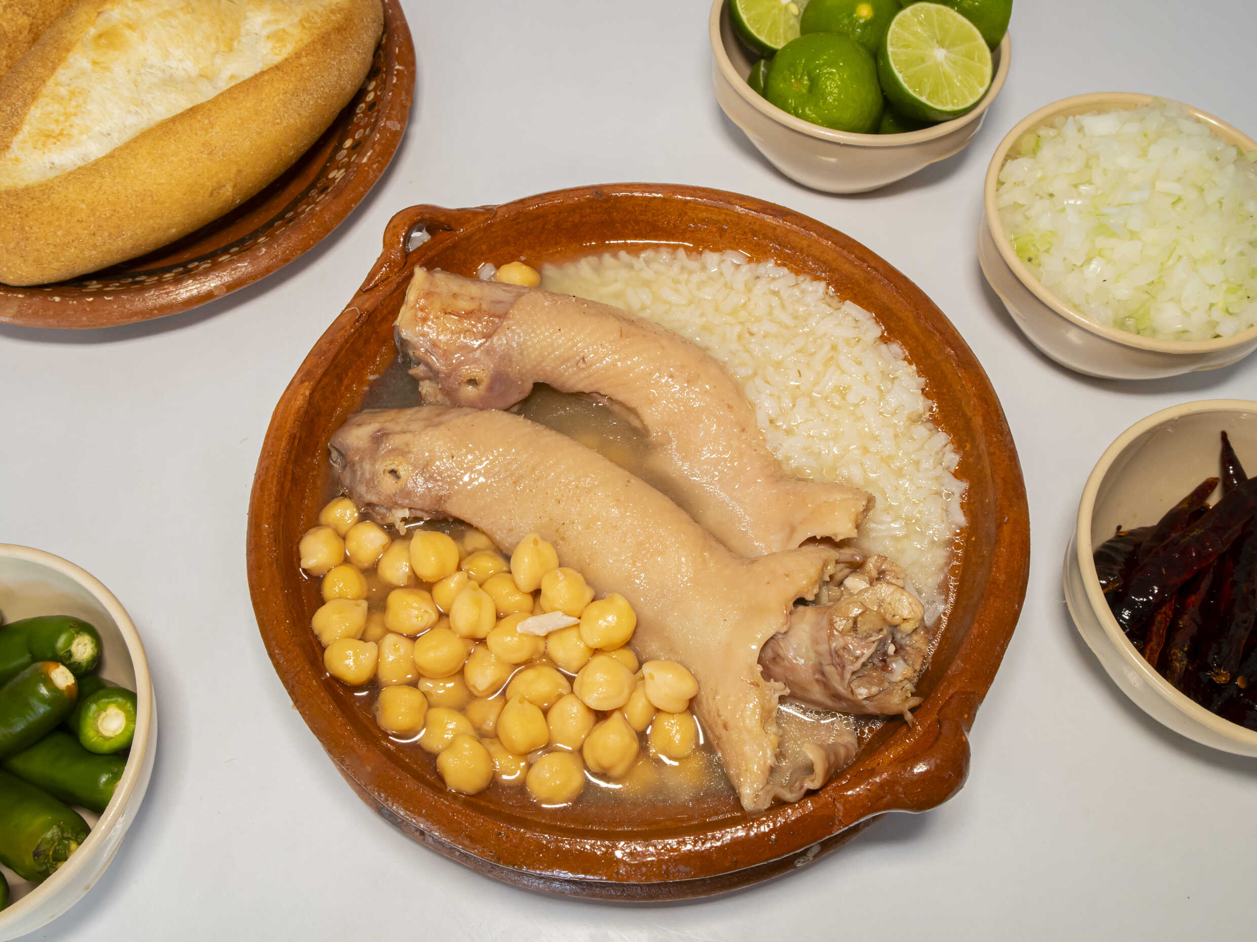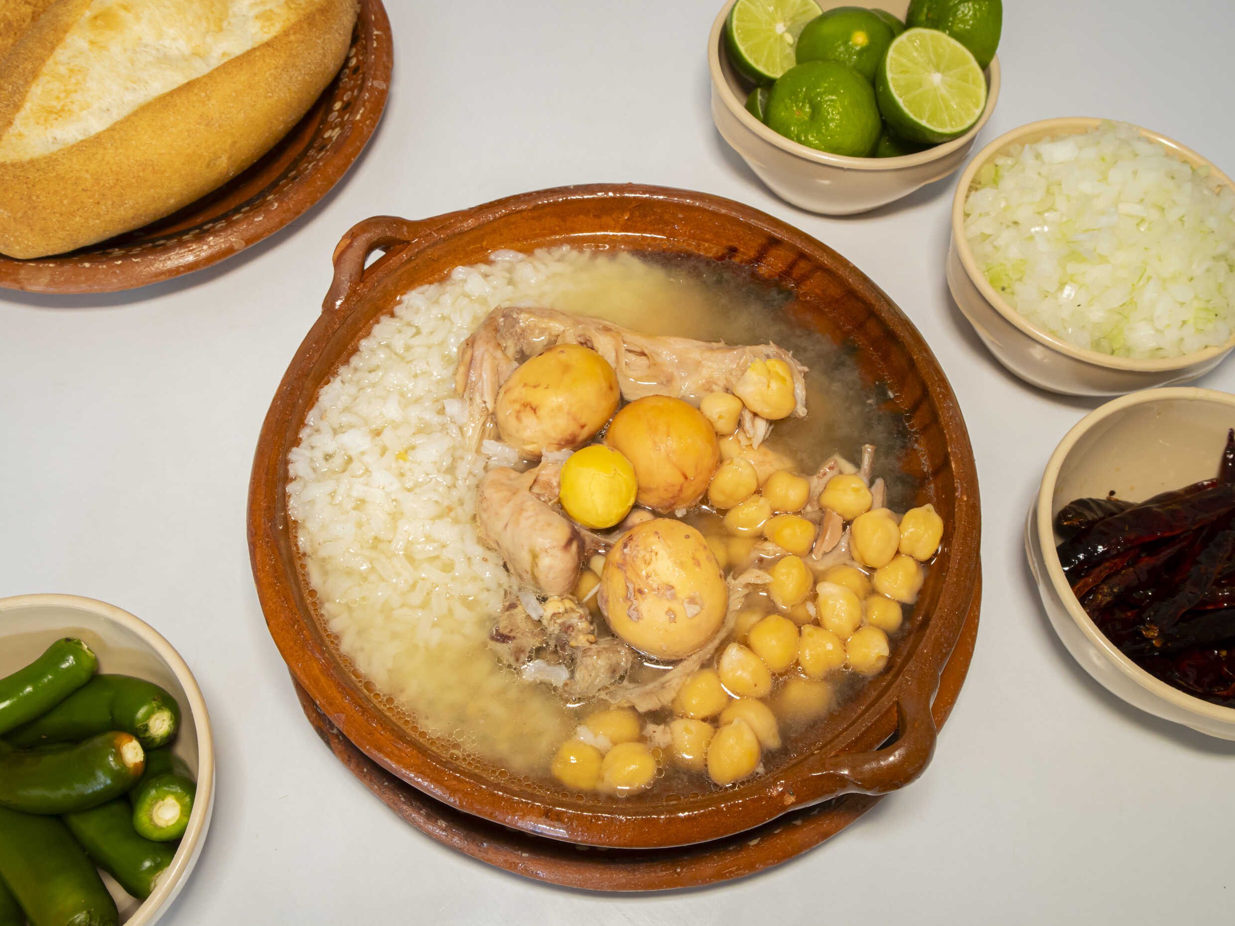 Un delicioso caldo de gallina con rabadilla, preparado con esmero para ofrecerte un sabor profundo y auténtico, ideal para reconfortar el cuerpo.