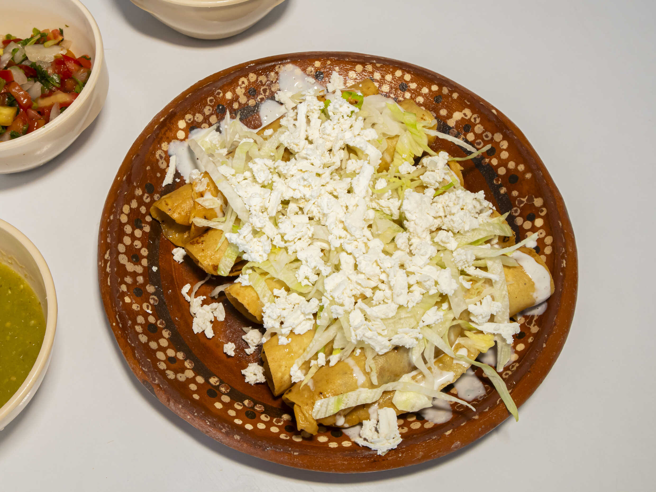 Una orden de tacos dorados acompañados de un refresco bien frío.