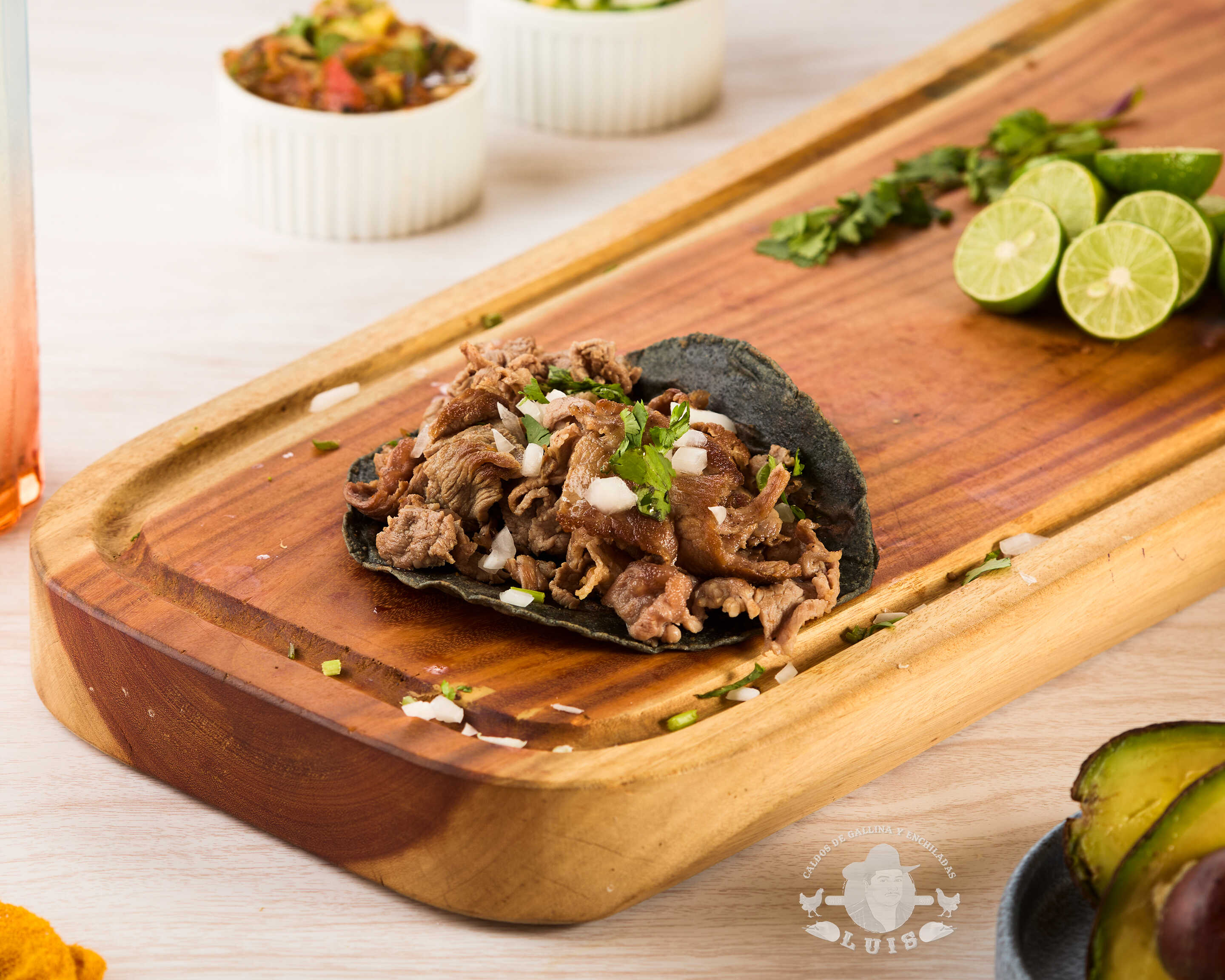 Servido con tortilla hecha a mano acompañado de bistec, jugoso y bien sazonado