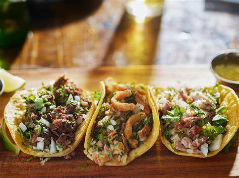 Tortilas, chiles toreanos, cebolla cambray, salsas, ensalada o pasta