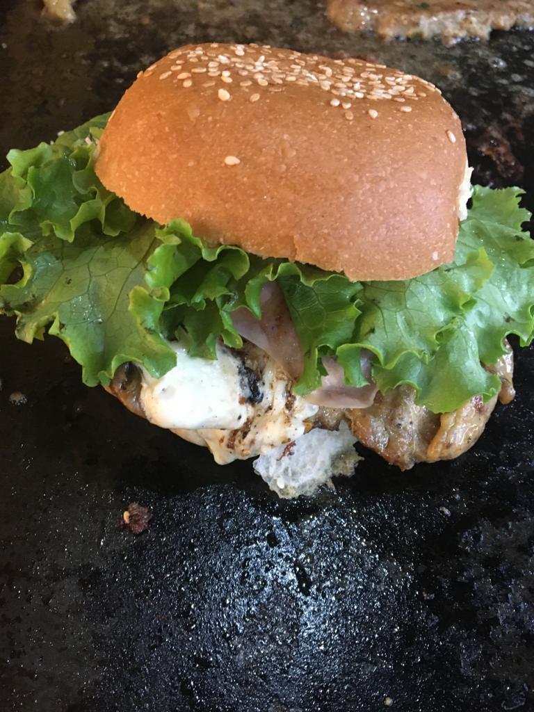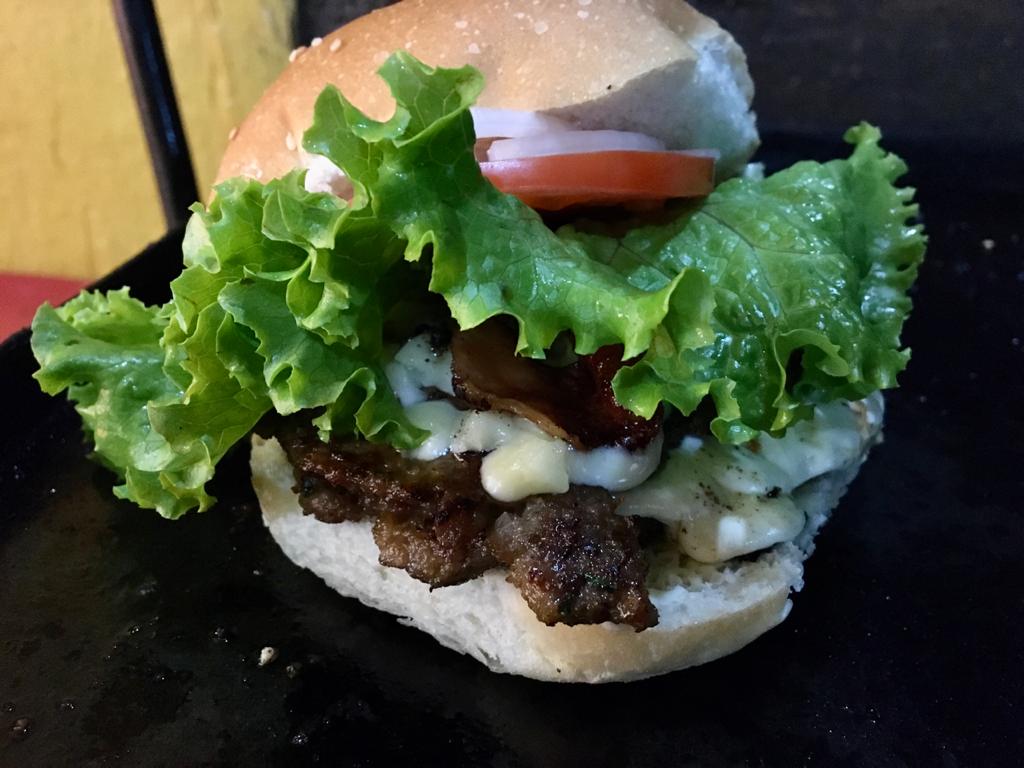 La especialidad de la casa elaborada con dos porciones de carne de res queso manchego queso Oaxaca y tocino.
