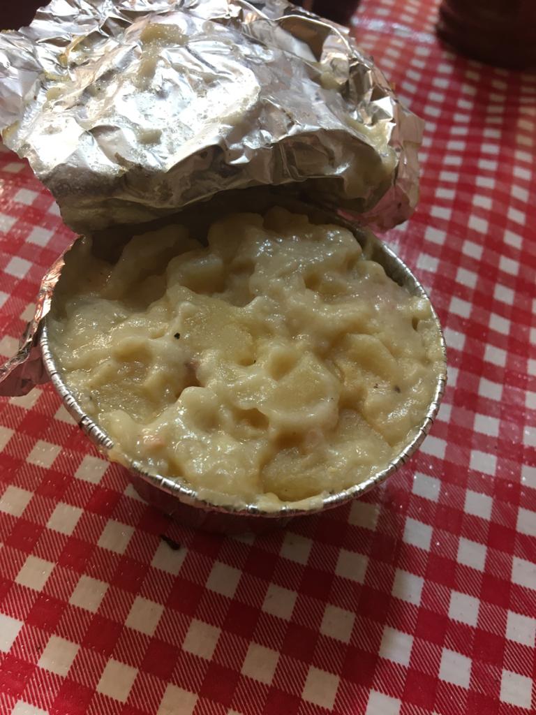Papita horneada con un toque de tocino y cubierta con crema.