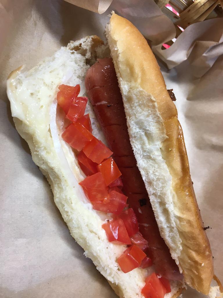 Exquisita salchicha de pavo con el toque de la casa cebolla jitomate y mayonesa.