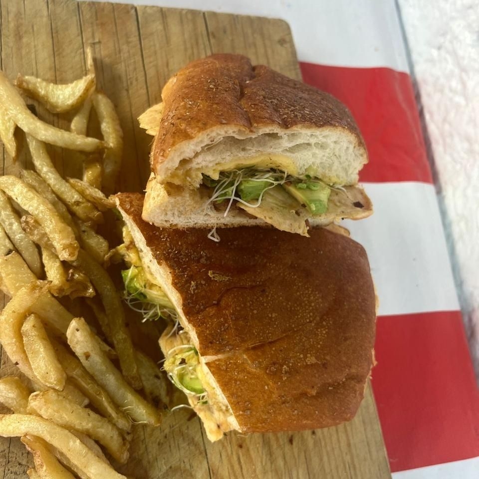 Pechuga de pollo a la plancha con queso oaxaca en tortilla de maiz normal acompañado con papas a la francesa nopalitos y cebolla guacamole o salsa roja y limones.