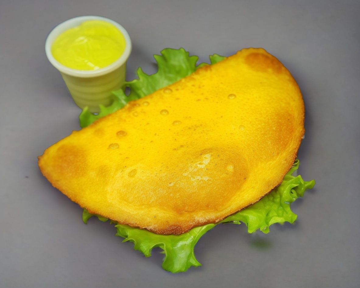 Pastelito venezolano hecho con harina de trigo, relleno de jamón, queso y salsa napolitana.