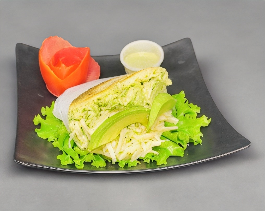 Pastelito venezolano hecho con harina de trigo, relleno de camarones, calamares y pulpo con sazón venezolana.