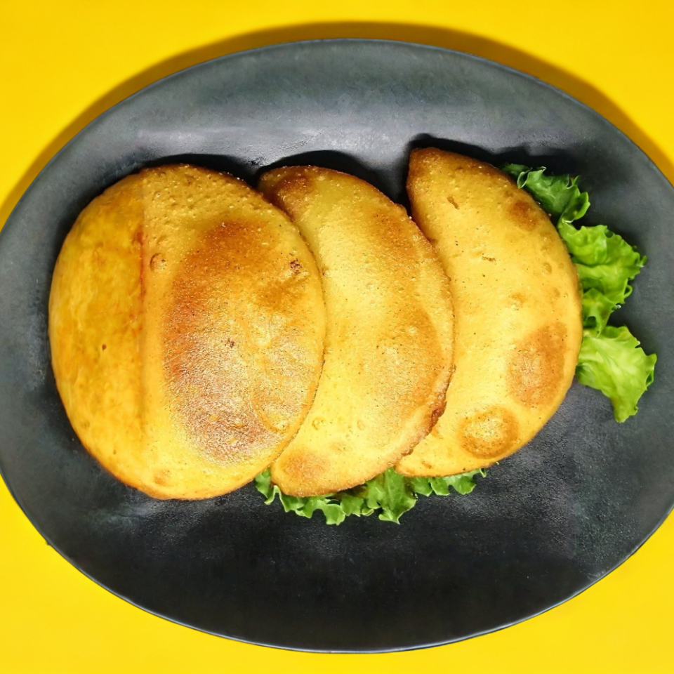 Empanada frita hecha con harina de maíz sin gluten, con el característico sabor de venezuela, rellena de carne molida de res.