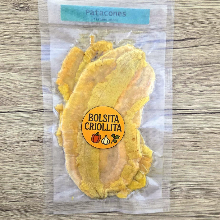 Paquete congelado listo para freir y servir de patacones. Contiene 2 piezas para armar 1 patacón