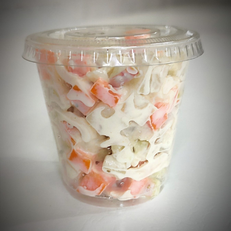 Contiene papa, zanahoria, manzana roja, pollo, aderezo de la casa.