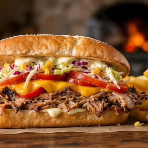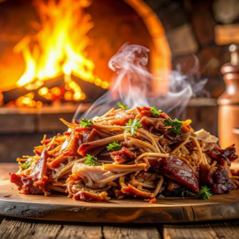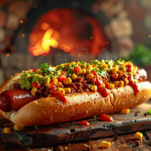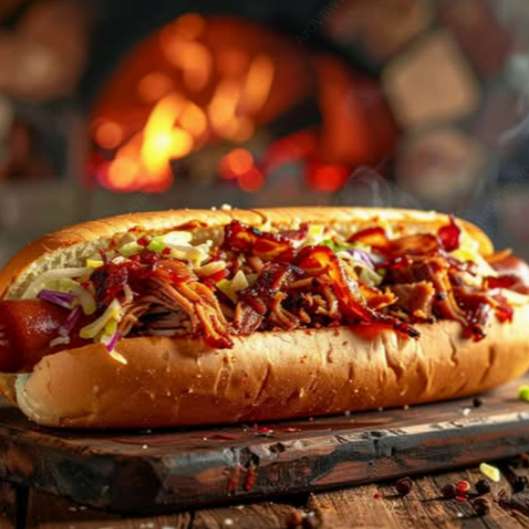 150 g De cerdo ahumado, ensalada de col, queso Chihuahua, salsa bbq, pepinillos y mayonesa Enxino.