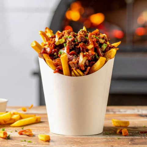 Con 100 g de brisket ahumado, cebolla caramelizada y salsa box, 250 g.