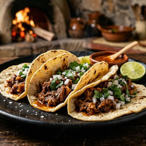 Antojito clásico: tortillas dobladas rellenas de chicharrón prensado.